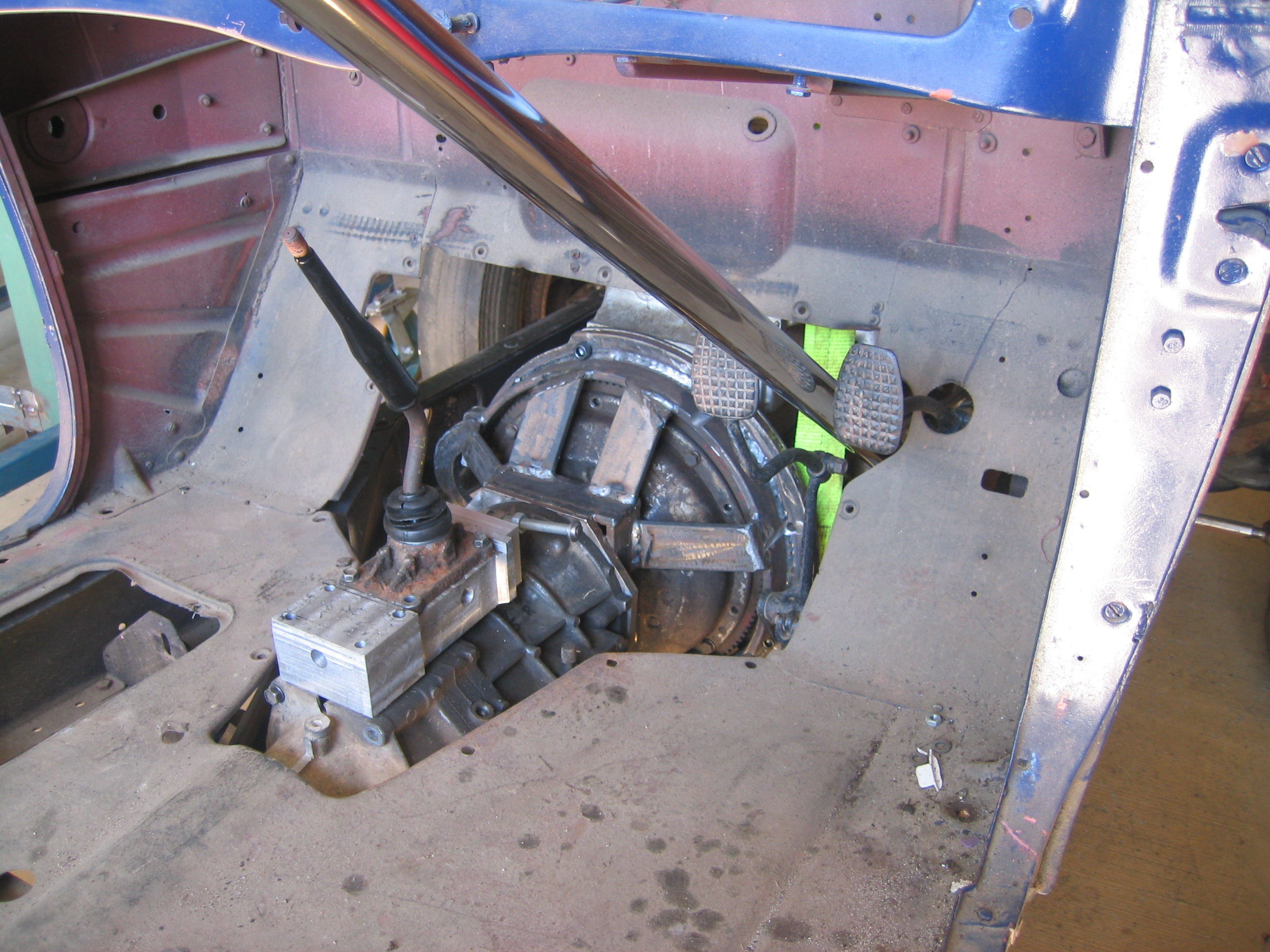 A bit more progress, I've finished machining and drilling the H8/Toyota bell housing.A couple of photos to show the relative sizes of the original and 5 speed boxes. The 5 speed just fits in the available space between end of the H8 and the chassis X members.And a couple more photos showing the gearbox in place.0