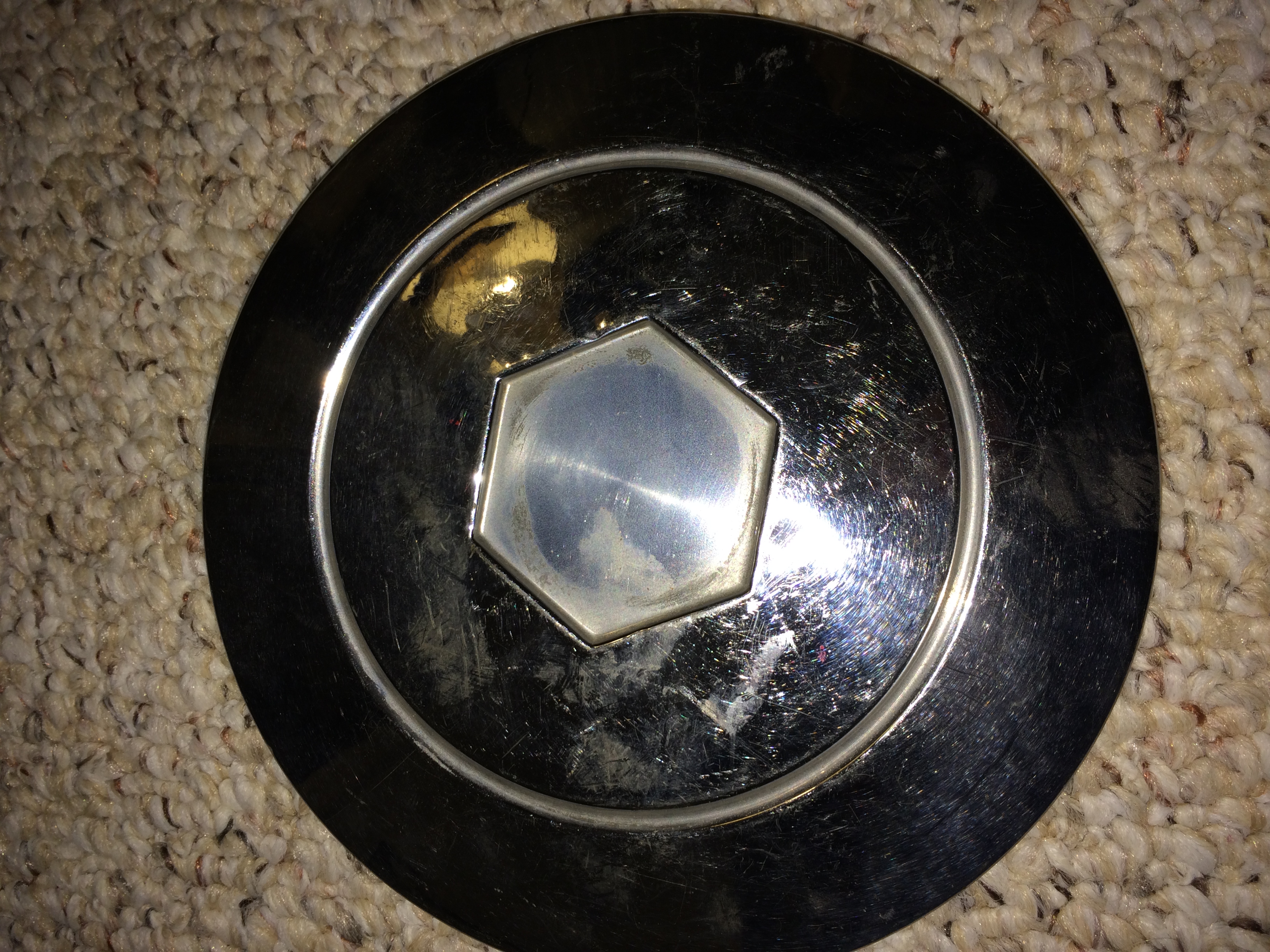It's not very big, 7.5 inches across. Looks like it would be a center cap for a wire wheel (similar to stepdown wire center cap). I posted pictures on a Packard forum, but not much luck. One guy thought it was a cap for a spare tire in the trunk.0