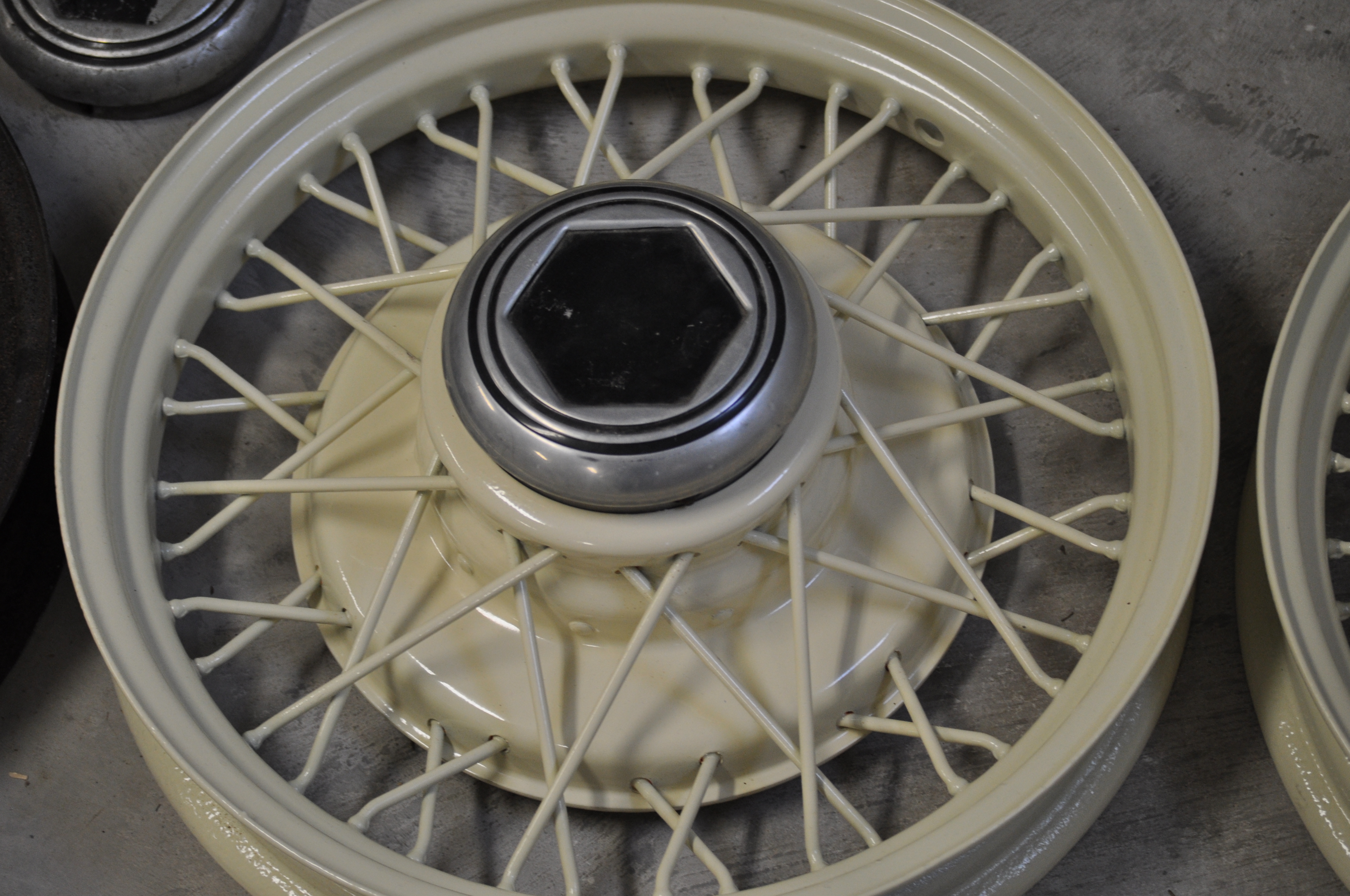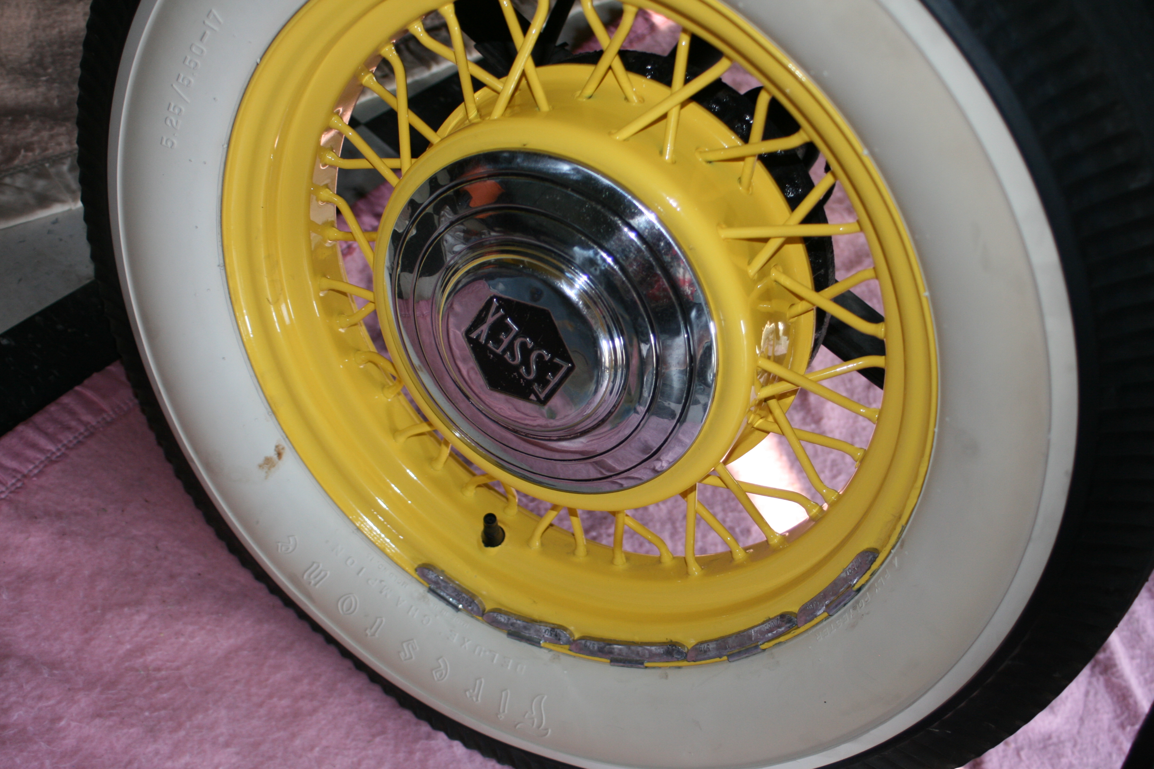 Thanks TwinH. I looked for the manufacturer but couldn't find any names, the wheels have been blasted and powder coated so the name may be covered. I have enclosed a couple of pictures of the 30 Essex wheels before and one after, Hope this will help. These are the correct hubcaps for the 1930 Essex. I still need to find 5 bolt hubs for the 19" 31 Essex Wire Wheels. One front and two rear.0