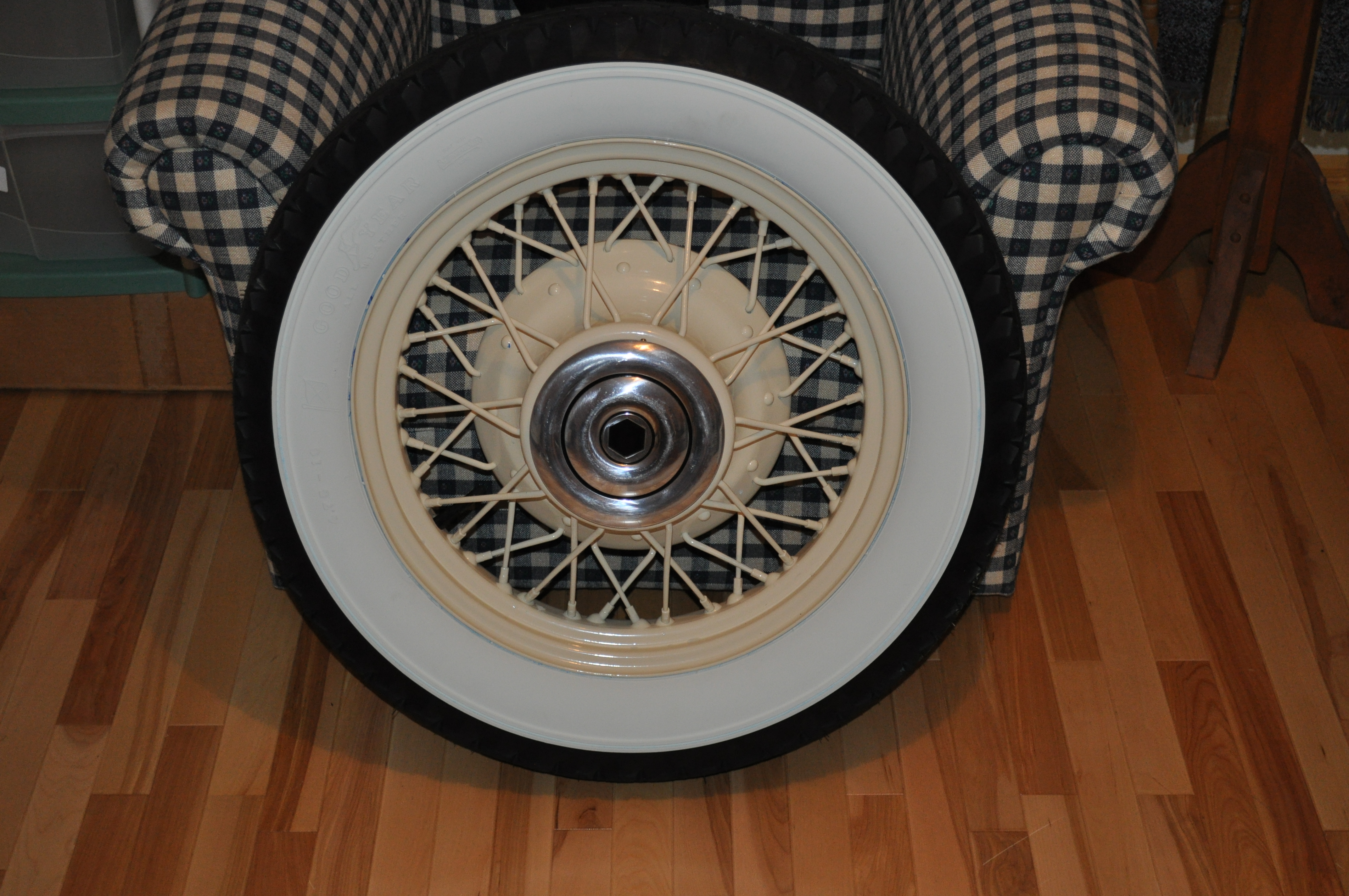 The 17" 4 lug wires were first used on the 1932 Terraplane. In 1933 the 16" adjustible spoke