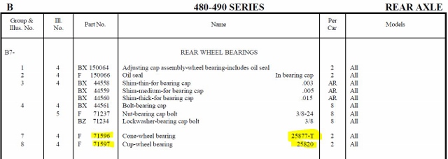 In the 48-49 parts guide it shows part number 71956 which shows the bearing number as 25877T.