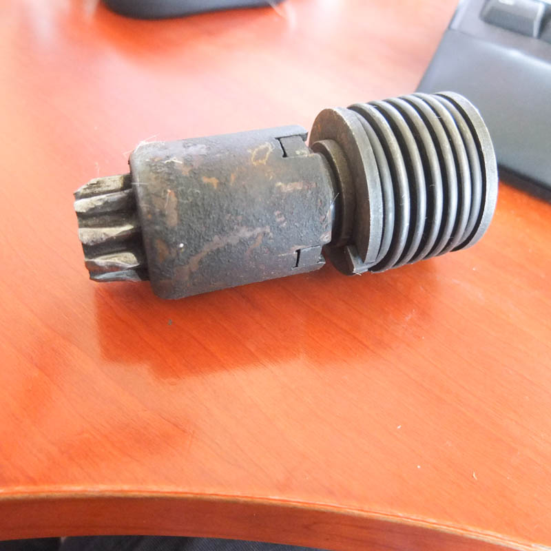 I recently removed my starter to have it converted from 6V to 12V (the car has been 12V since I've owned it). Sure enough, the starter bendix gear was totally buggered.