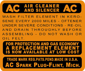 I'm far from an expert on the air cleaners, but you have to remember that their were two different maufacturers that Hudson utilized, and I'm reasonably sure that either company couldn't meet the demand, hence the need for multiple vendors. Some were AC filters and used AC stickers, and some were United Air Filters and used United stickers.0