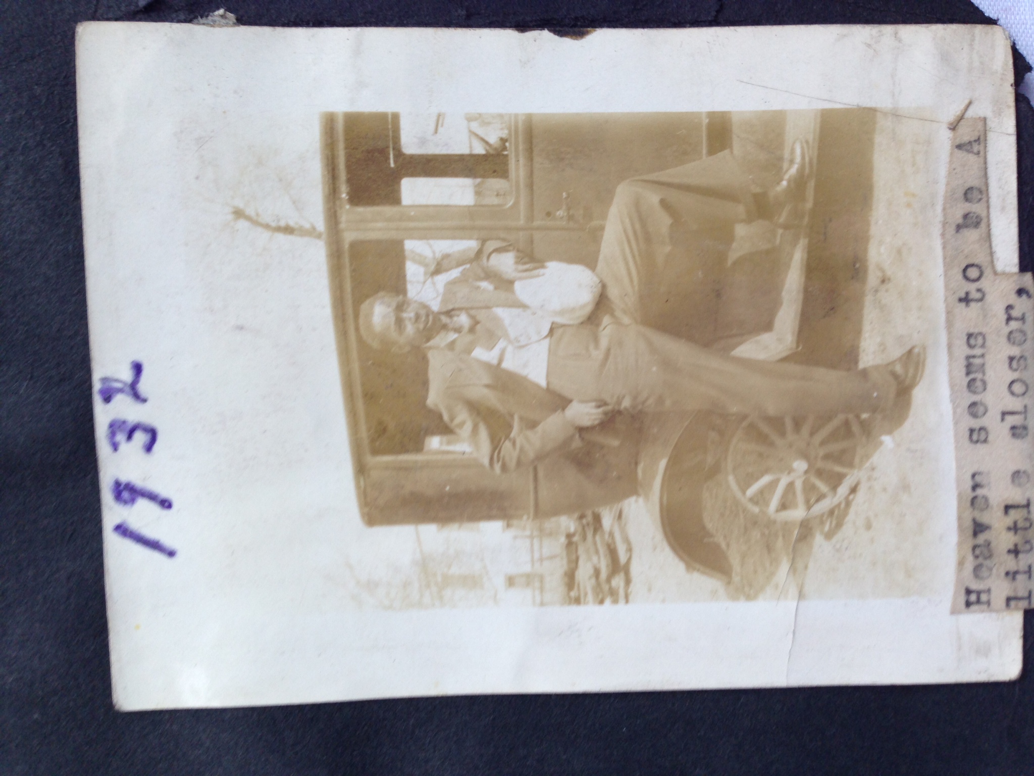 The chap is standing on the run-board of a 1927 Ford T model (see attached photo of similar car)