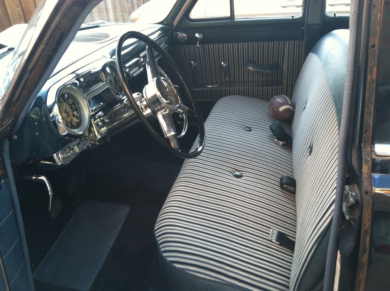 Took our 52 to the local car show for my upholstery shop to advertise last weekend (I just had the interior redone in the original blue vinyl and striped fabric). They went ahead and entered it in the show as I had to coach my kids in soccer for the day. Anyhoo, we ended up winning the 50's class! Cracked me up!