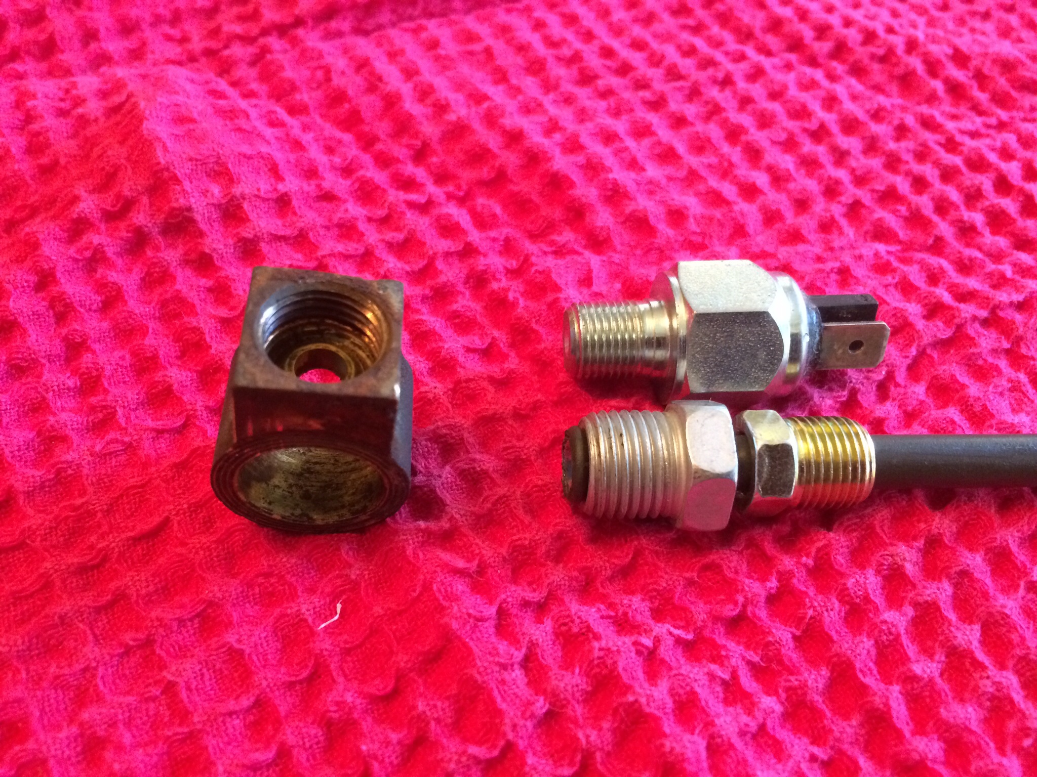 Hello All! I have hit a wall on my 57 Hornet with the brake light switch. I purchased the Harley switch so I can use the DOT5 synthetic fluid in the master. Below is a pic of the rebuilt master/booster on the car. You can see the banjo fitting where the brake line should fit back into. I removed the banjo in the second pic to better explain my dilemma. The top right is the brake light switch (which I understand should attach directly to the master cylinder where the lines connect). The bottom right is a new brake line and fitting. The threads on the brake line fit perfectly in the banjo fitting. The threads and size of the brake light switch are smaller and don't fit. My questions please: