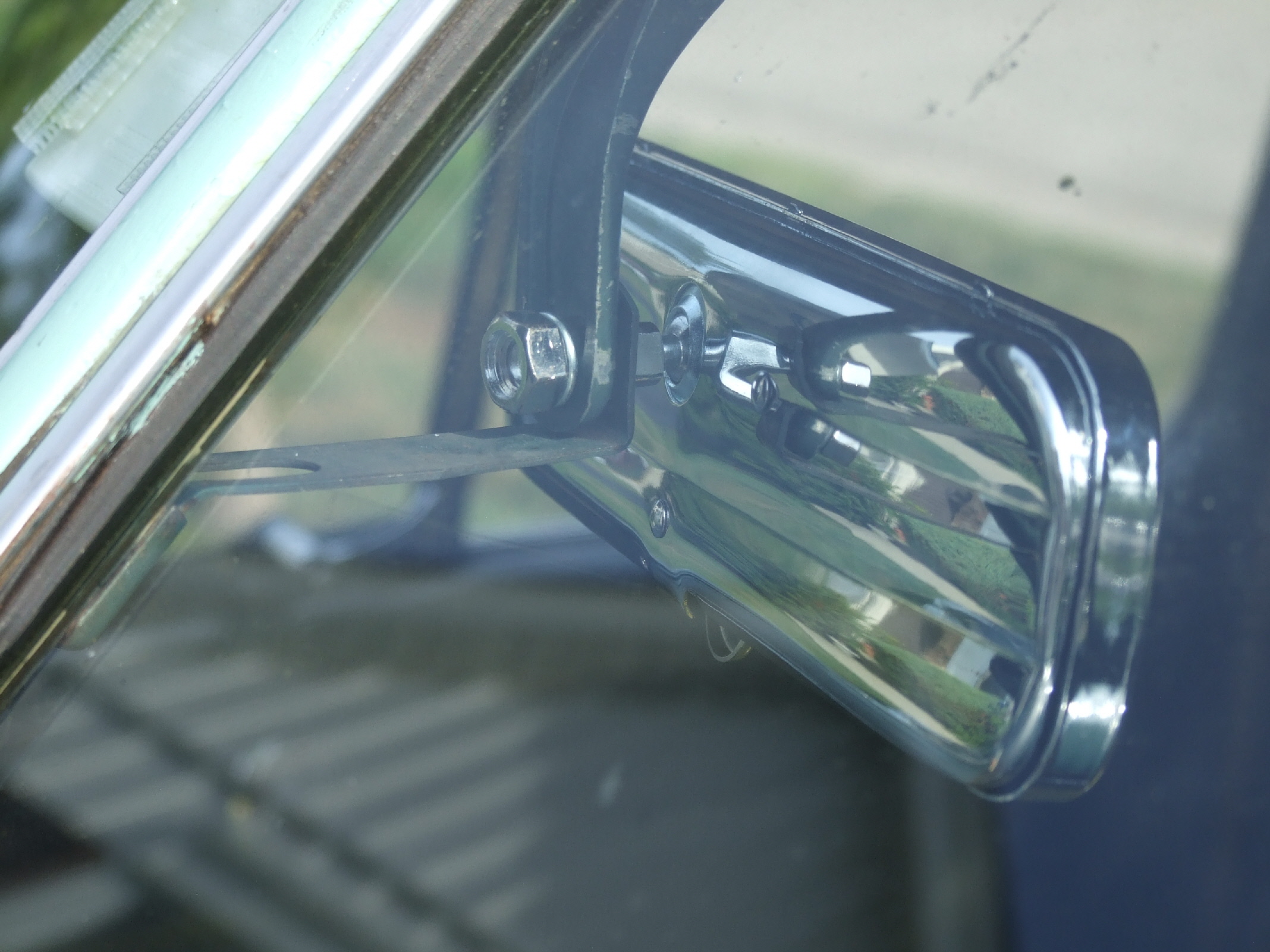 My '53 Super Wasp has a glare-proof (day & night) rearview mirror. This was an accessory offered by Hudson dealers apparently starting sometime in 1953 (see May, 1953 Hudson Service Merchandiser). The one my car originally came with was at best in fair condition. The chrome metal was pitted and the mirror itself had faded silver paint. Over the past two years I could never find a decent one at any parts swap areas at either the National or Regional Hudson meets.