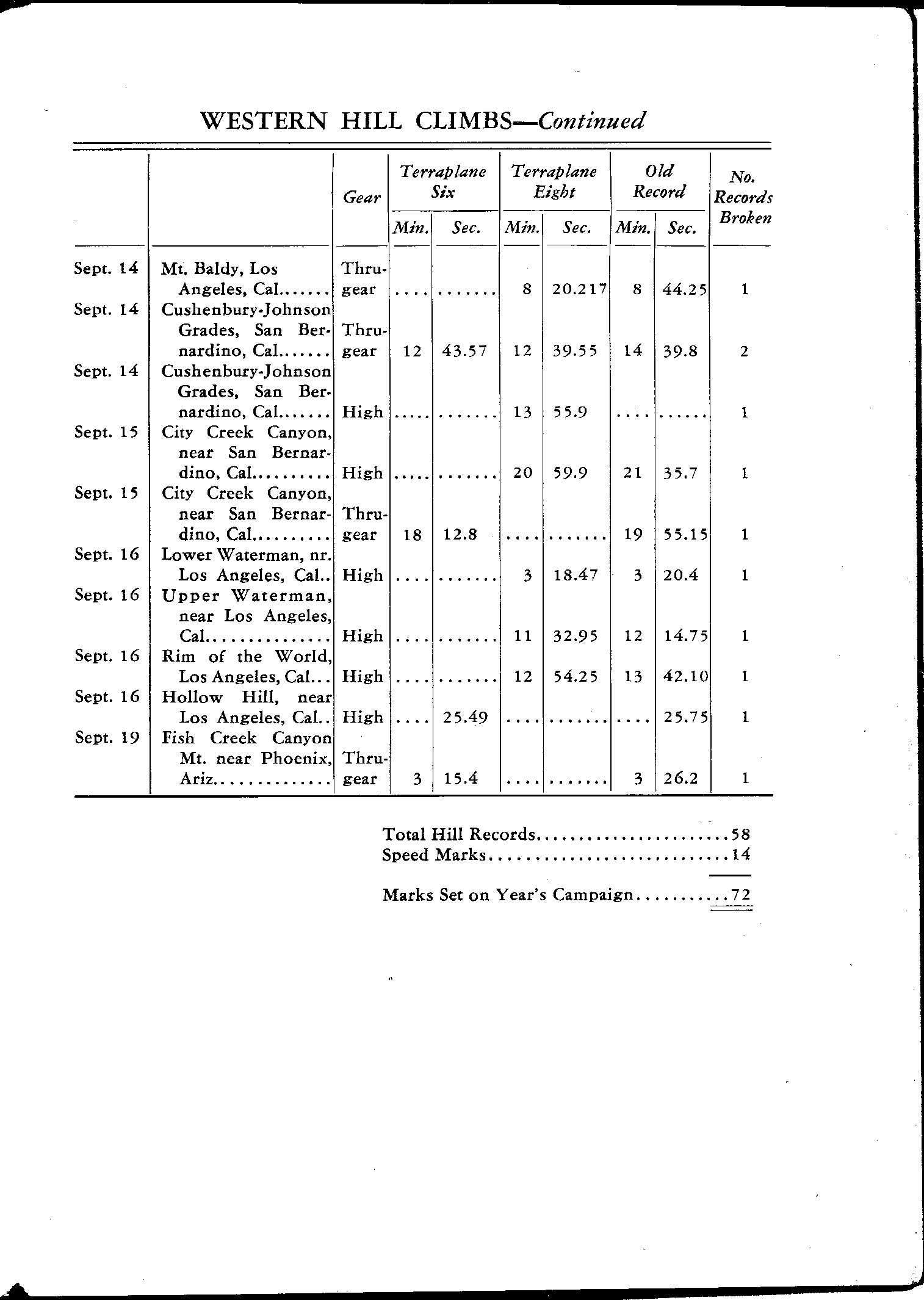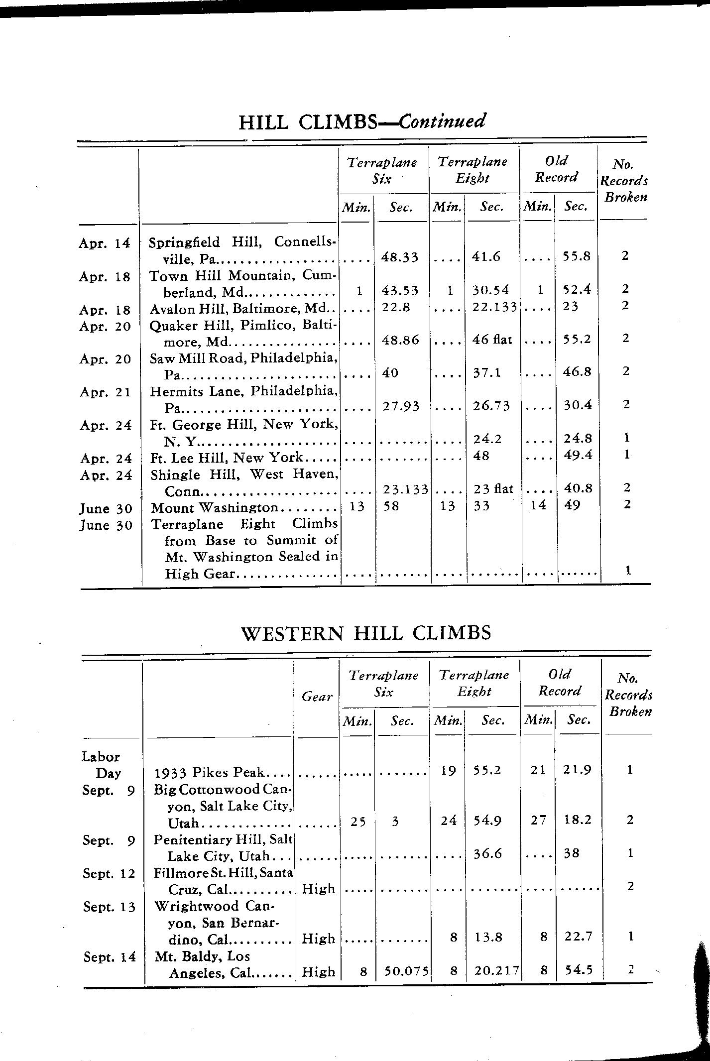 Interesting that on the hillclimbs where both the Six and the Eight registered a time, the Six was hardly any slower on many of them!