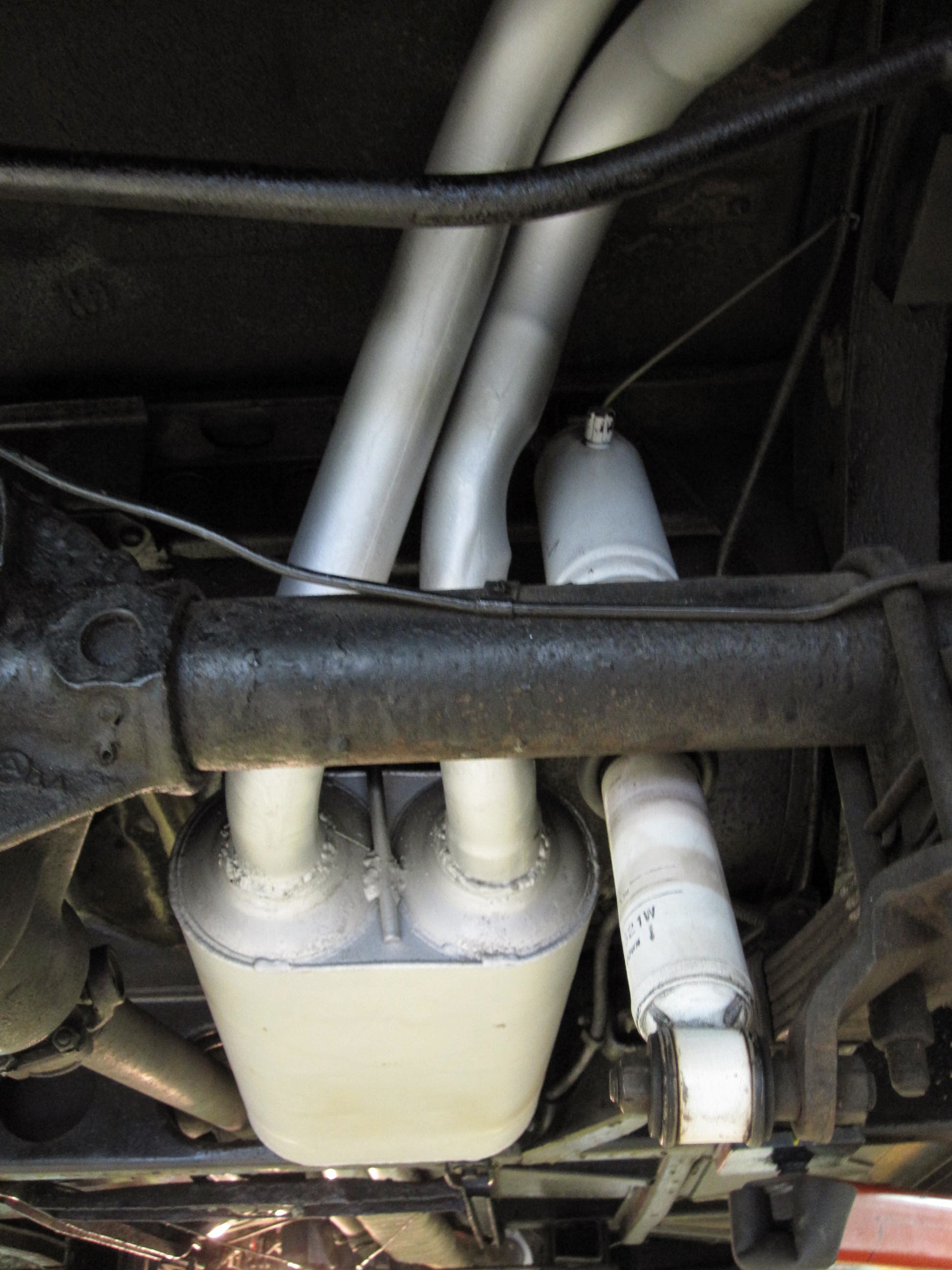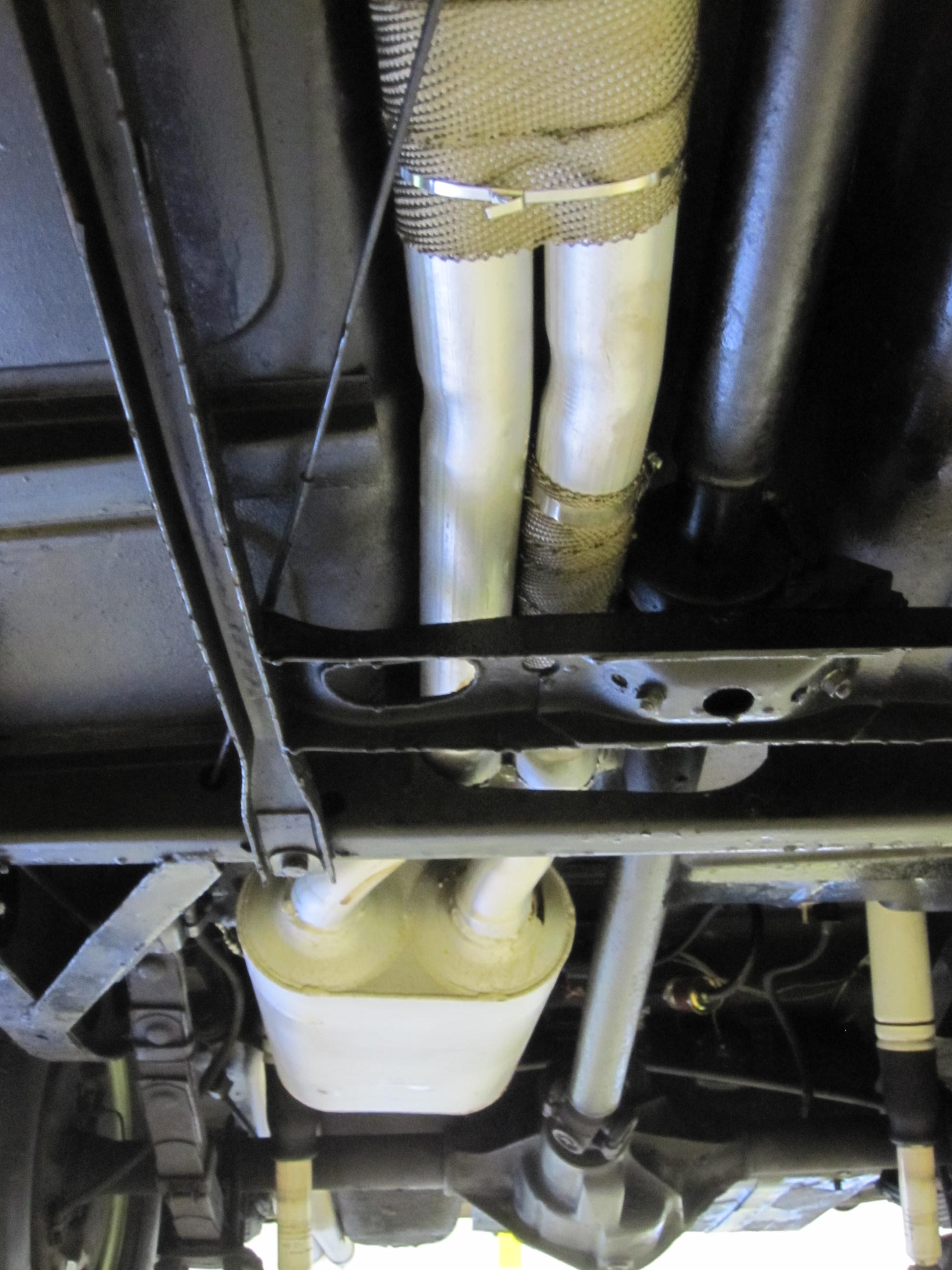 Lee, sorry you had that experience with your El Camino. Does not seem to be the case with mine. A torque straight six likely responds differently to such an intervention. Clifford swore by X pipes but I welcome the input of racing types like Russ Maas. As far as seat-of-the-pants result, throttle response is awesome in this car. I stayed with dual 2 inch pipes to avoid the problem you speak of- at <=200 hp it is pointless to use bigger, and more difficult to route. Total performance mods in my case are bigger cam (not 7X though, streetable grind), 262 head, bored to 318 ci (out of necessity), twin H, Clifford headers, dual 2 inch exhaust through the previously noted magnaflow. The carbs were prepped by Walt who knew the mods I had made. I get no lag off the line, and I do not feel there has been any performance detriment since removing dual glasspacks and installing this system, but I have no dynos to prove it. I'm just happy to hit the gas and see the nose lift nicely. I may be out of my mind but I figure HP in the 180 range. Next step would be valve relief but I do not plan to go further. I'm not racing it, just wanted to wake it up a bit.