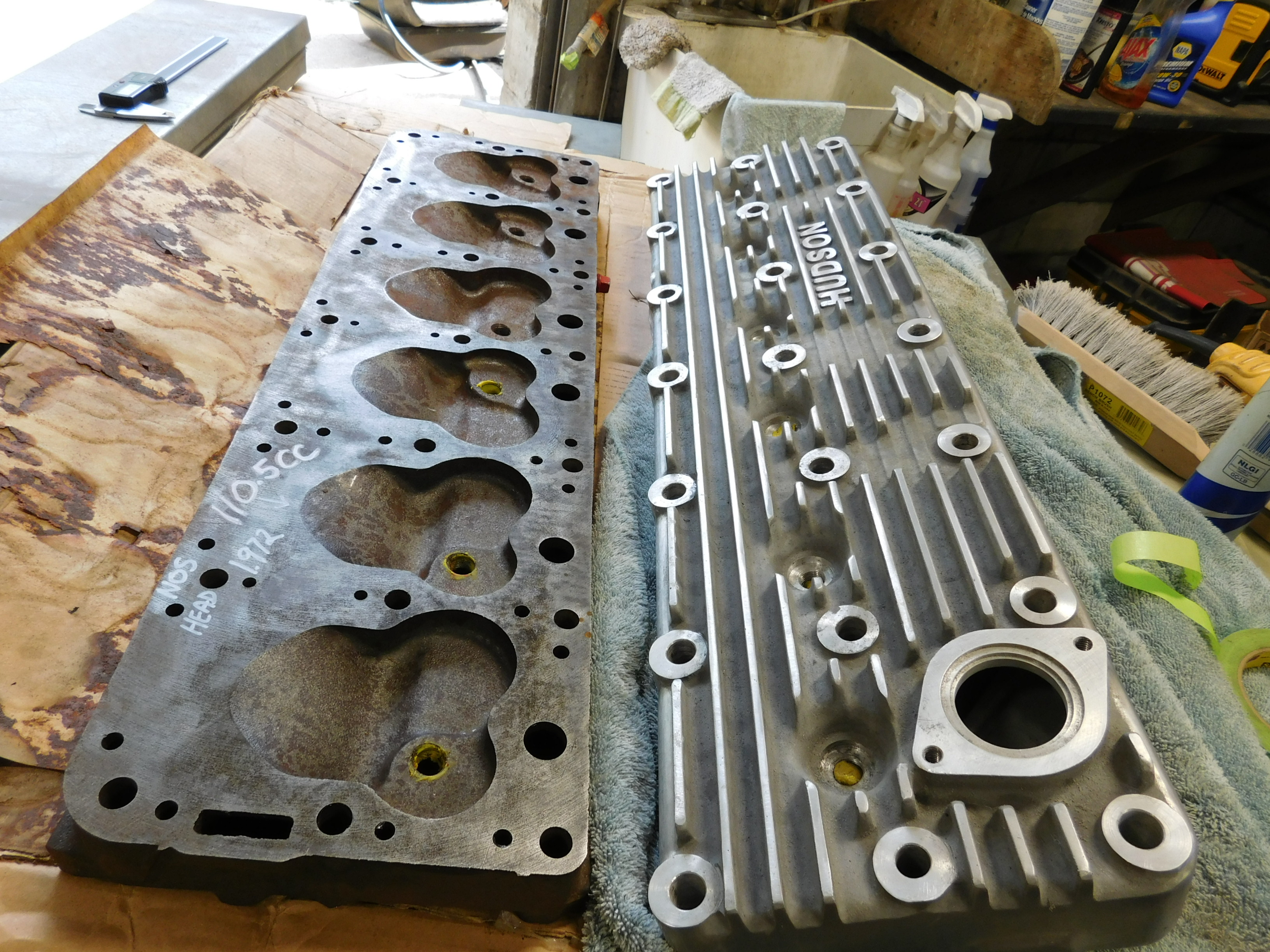 For all the time I have been driving and fix-in Hudson engines, there have been several "facts" that I have been told over and over but some how I was never ever able to verify those "facts" in Hudson literature. The thickness of a new Hudson 232/263/308 head was one of those "facts".Today while looking for the pictures posted in the previous comment, I thought I would check a Back in the Day, Jack Clifford catalog. Sure enough on page 2 of the catalog under Hudson Tuning Tips is Head Milling Limits, "All heads are 2" thick when new and will take a milling of 0.60" safely, do not go more than .100". The text goes on to discuss the results of milling beyond the recommendations as well as the compression ratio of the various stock heads mounted on different engine displacements.I am leaning toward this being the SOURCE of the 2" "fact" for new Hudson heads.I was fortunate to know Bernie Siegfried and during my discussions and visits to his shop I do not remember ever being told NEW heads were all 2" thick. I do remember being told that to make the engine preform, all cylinders should have the same volume (ie cc each combustion chamber, including assuring piston rods were straight, pin bosses equal and the pin placement in each piston was the same). I know Bernie had unconventional ideas about engine building such as shimming bearings, reuse of head gaskets and stacking them to create a compression ratio. There were steel sheet gaskets in his shop that were used to "create" the bigger combustion chambers ... to work with his cam/valve timing needs.Any way... is 2" factory truth or round up fiction made fact? I sure don't know.... but Jack Clifford was sure enough to publish that as "fact" in his early catalogs.0