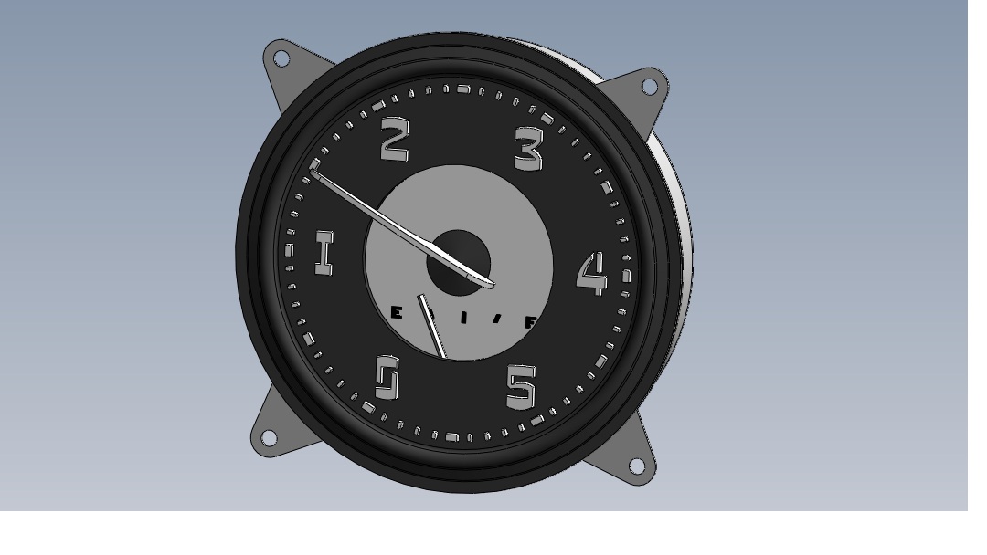 My plans for the Tach and Fuel gauge. If I could find a source for concentric-dual movement stepper motors I would have it laid out just like the clock, with the 'hour-hand' the pointer for the fuel.