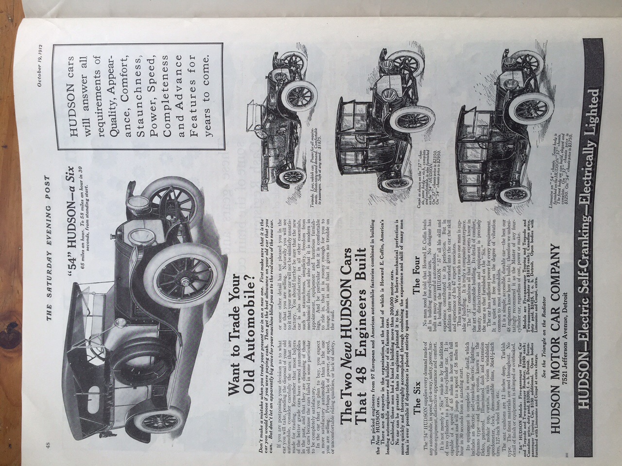 Was cleaning out my mother in laws house after her passing last winter and found a few copies of the Saturday Evening Post from October 1912. Starting looking through it the other day and saw this Hudson advertisement. There were several other ads from car companies I'd never heard of. Kinda cool.