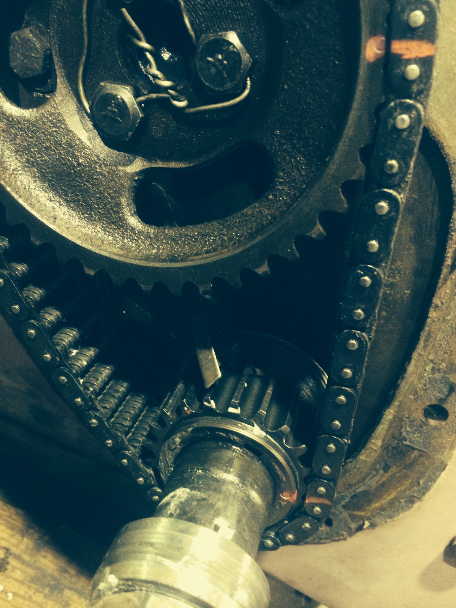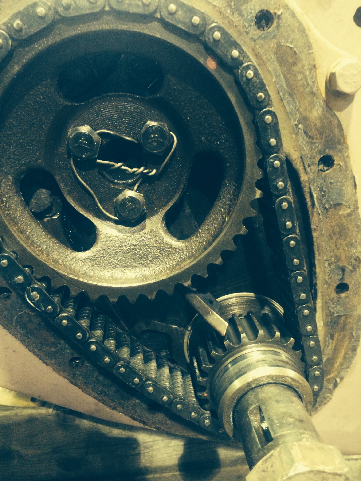 ok  removed timming  gear  cover    found  mark on  cam gear  but  cant find  mark on  crank  gear. I  tried   counting off   7  links  and still  cant  find  it . I  am  going to  replace  chain  with   one  from  21 st century  Hudson .  has  anyone  else  ever ran  into  this   ?  thanks   Andrew  ill  send  a   picture  also