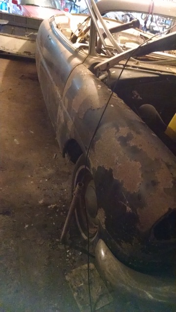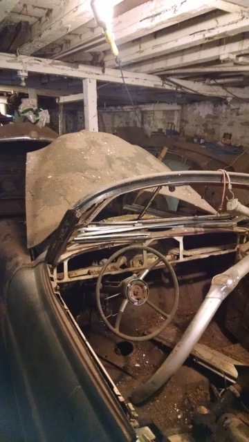 I did not see the car but  I had a phone conversation with the Physcian who bought it over 30 Yrs ago to restore then parked in his Barn. He had some work done to it but started buying other cars eventualty lost interest. He sent me theze pictures and described the car over the phone as solid and restorable with a ClearTitle. He said the Top Bows, Header, etc, are there.