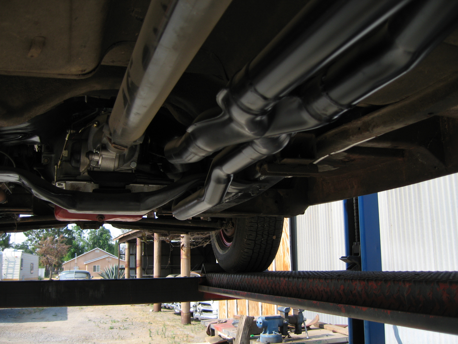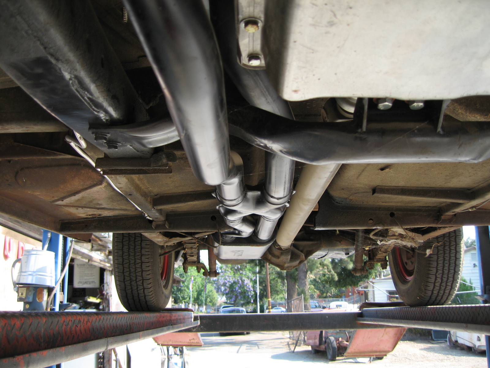 Interested in specific info as to how they interfere with wheel well, intake manifold, driveshaft tunnel and how they can be made to exit rear. Any shots from below would help.For some reason, old pics on this site don't show up in old posts??Thanks0