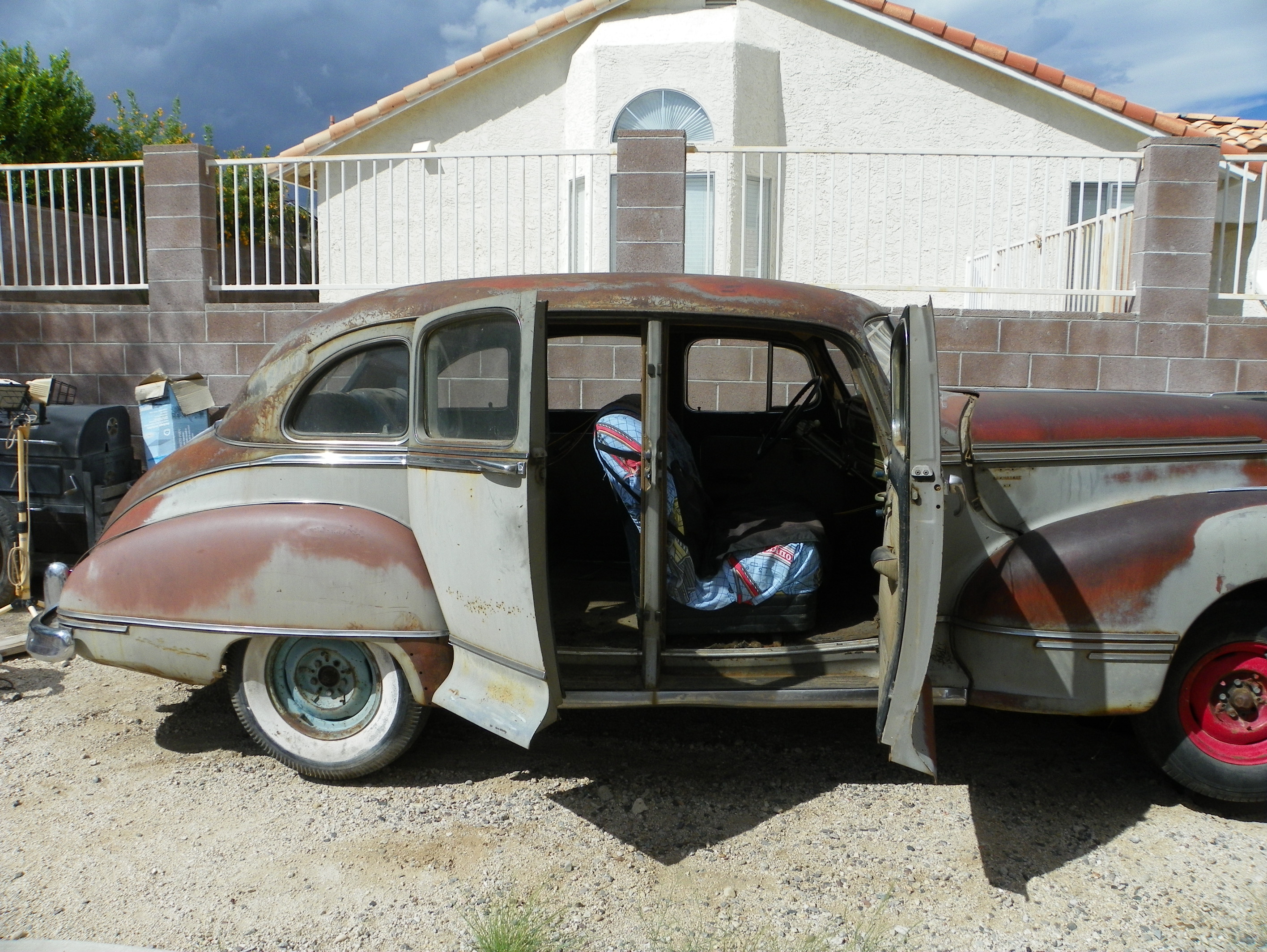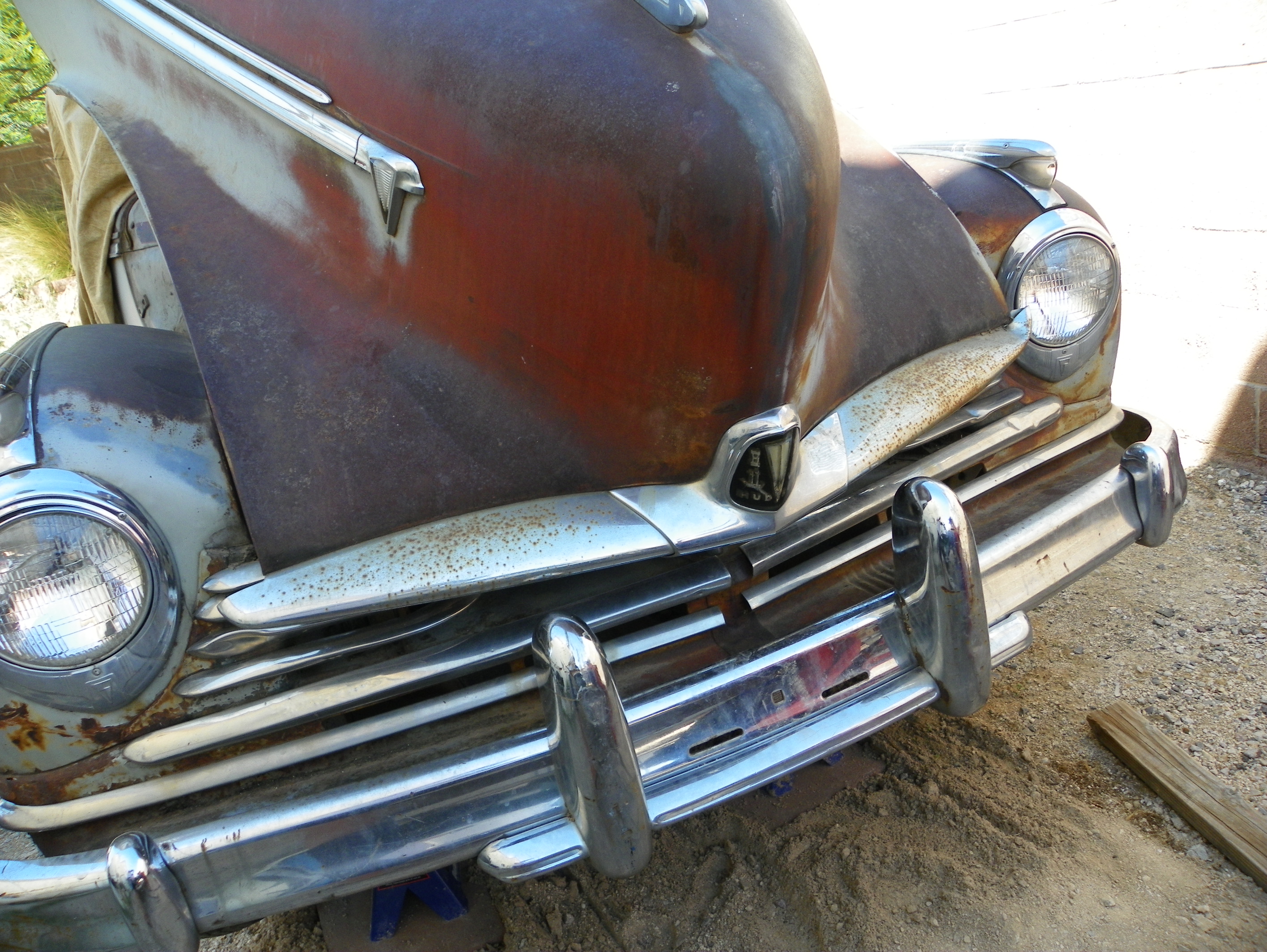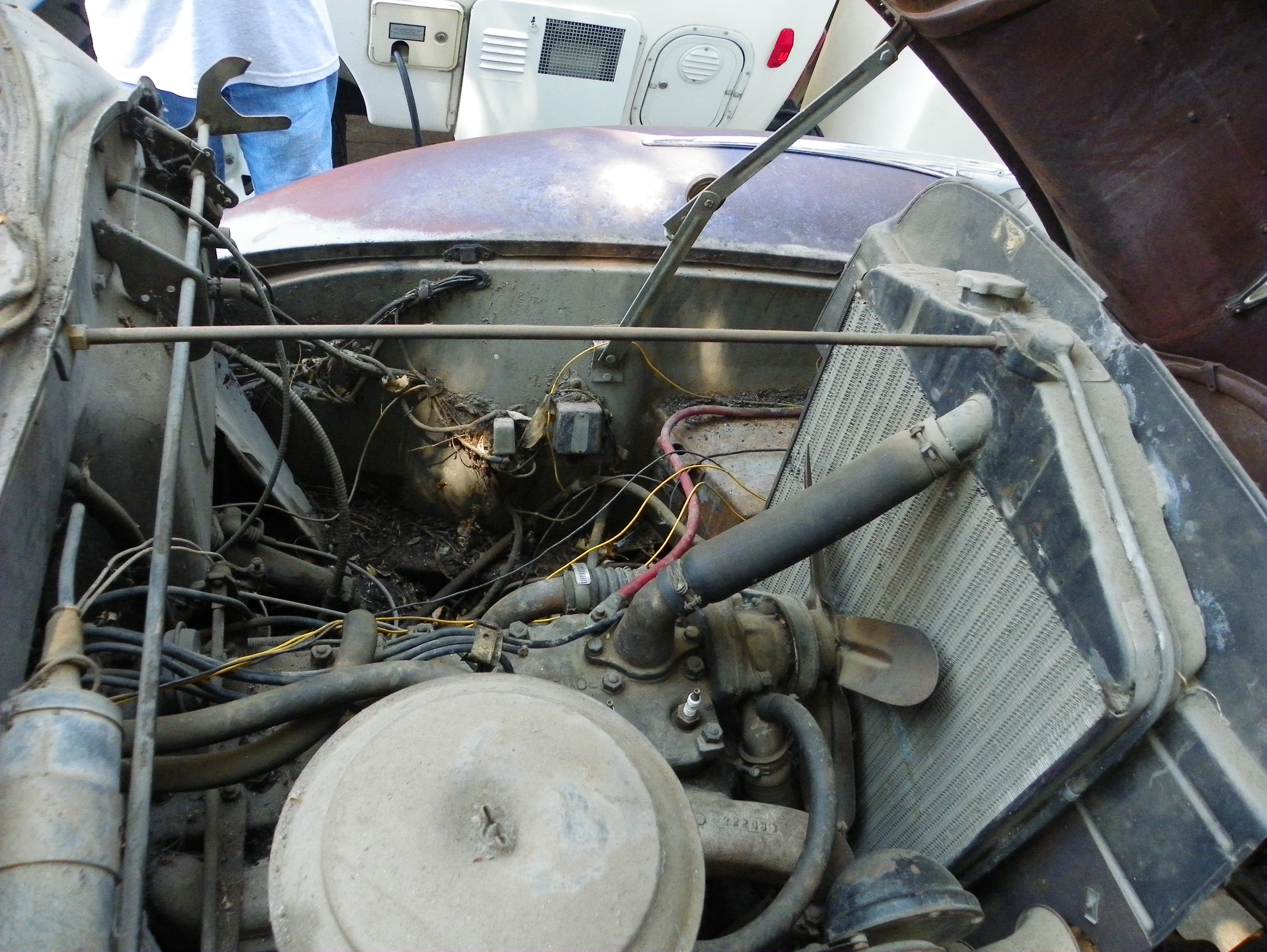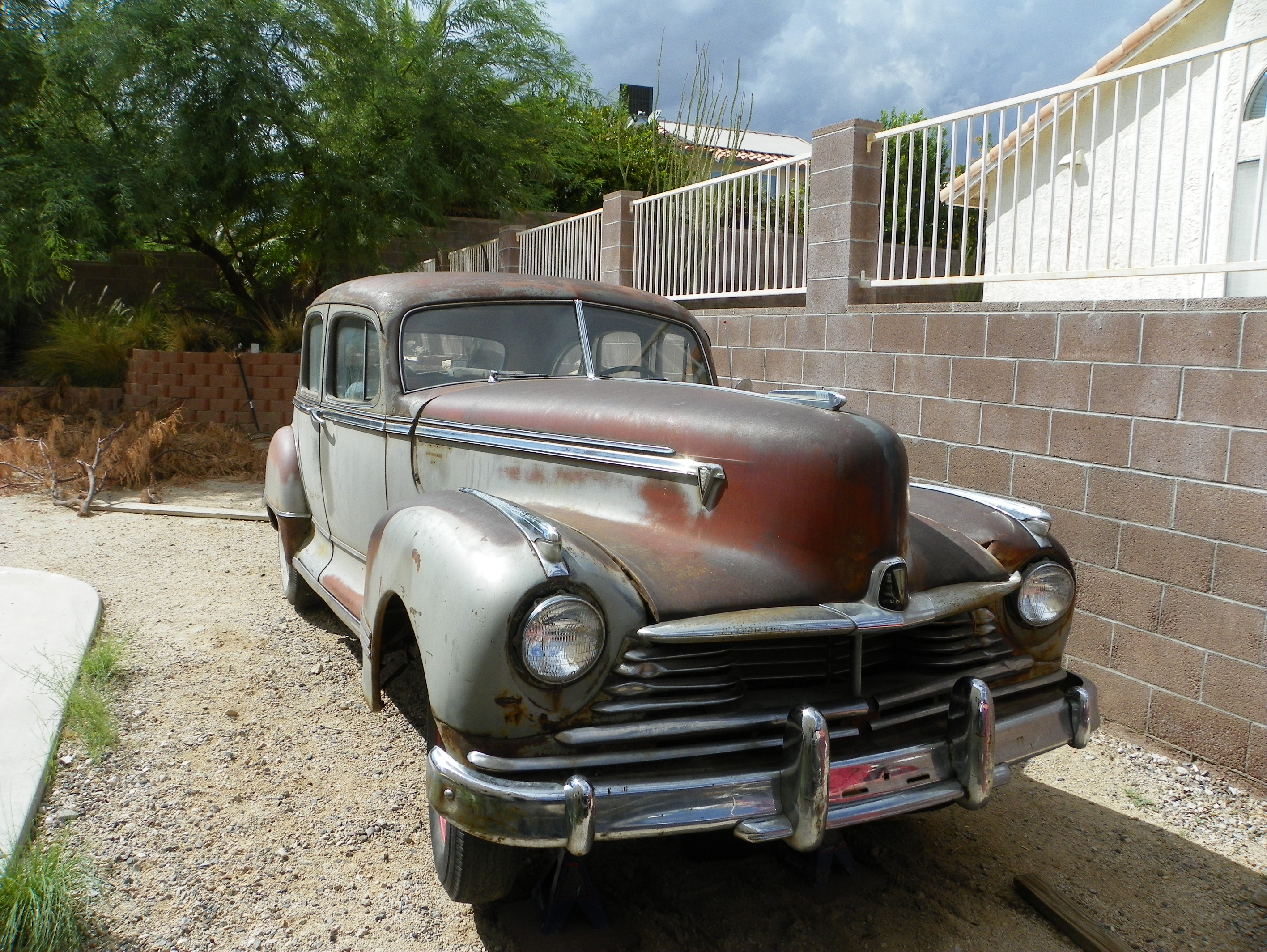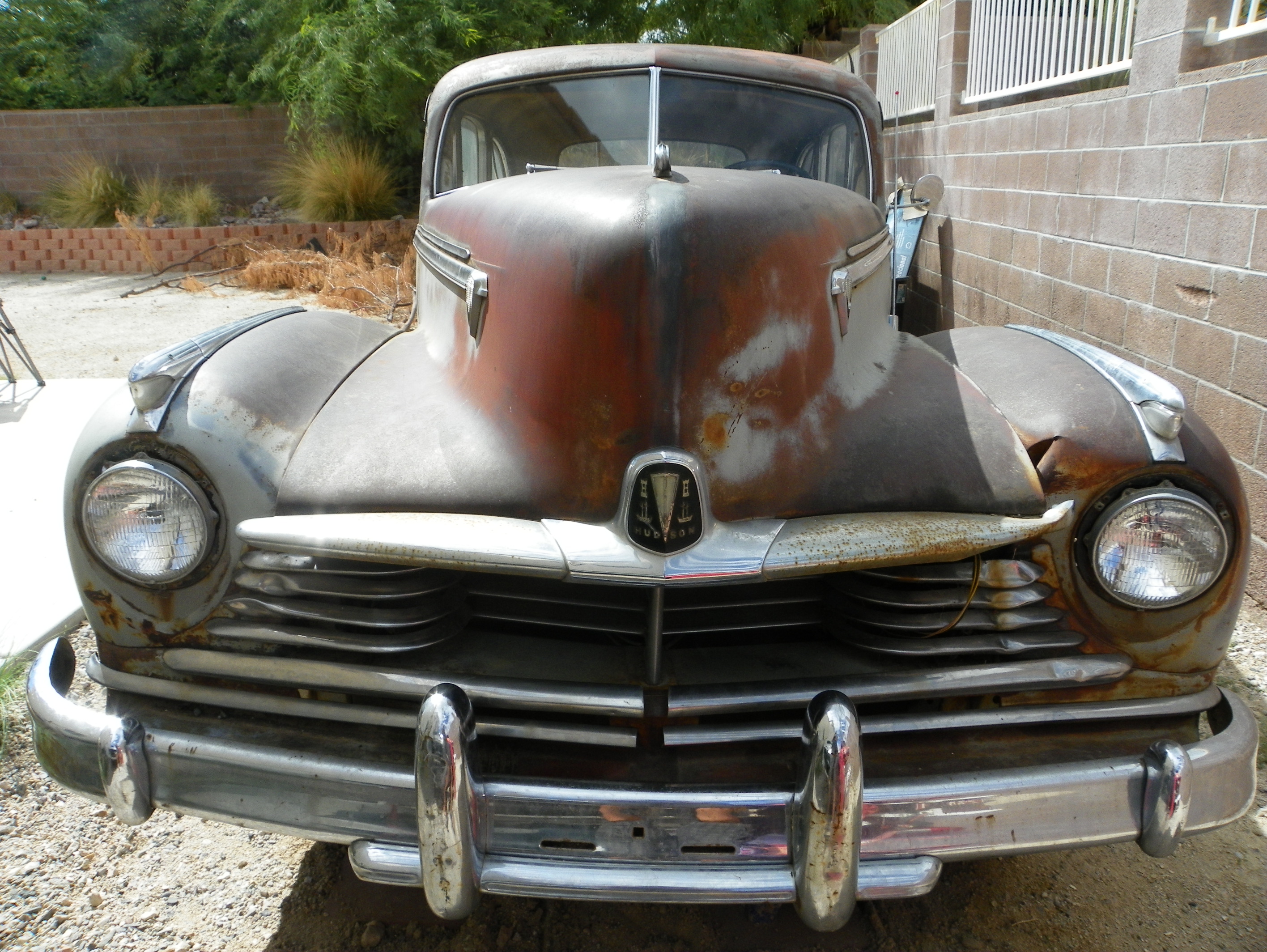 I bought the car about two years ago. I have been slowly working on it. I been busy with my 1960 Studebaker lark almost finish with building it into a hot rod. When i bought the Hudson in Colorado. I was surprise that there was no rust (cancer) just surface rust. The Hudson was parked for 40 years. The motor is locked up really bad that it bent my breaker bar. It has chalk marks on the roof and inside the seat frame. The car only has 65,000 miles on it. It even has the original dealership sticker on it in the rear window.