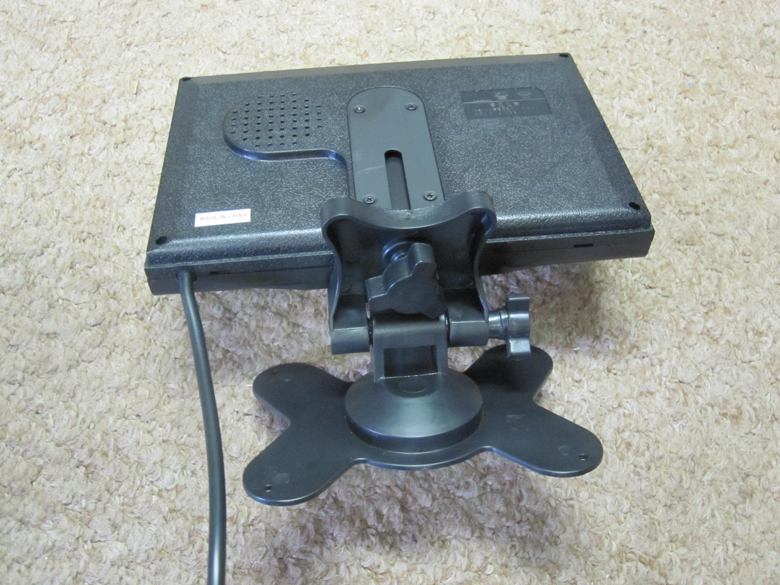 Note on the photo below of monitor and adjustable mount that the plastic mount ears bend & can be screwed to the transmission tunnel if you don't have a caddy as I do. Also comes with a suction cup mount (aka Garmin).0 -