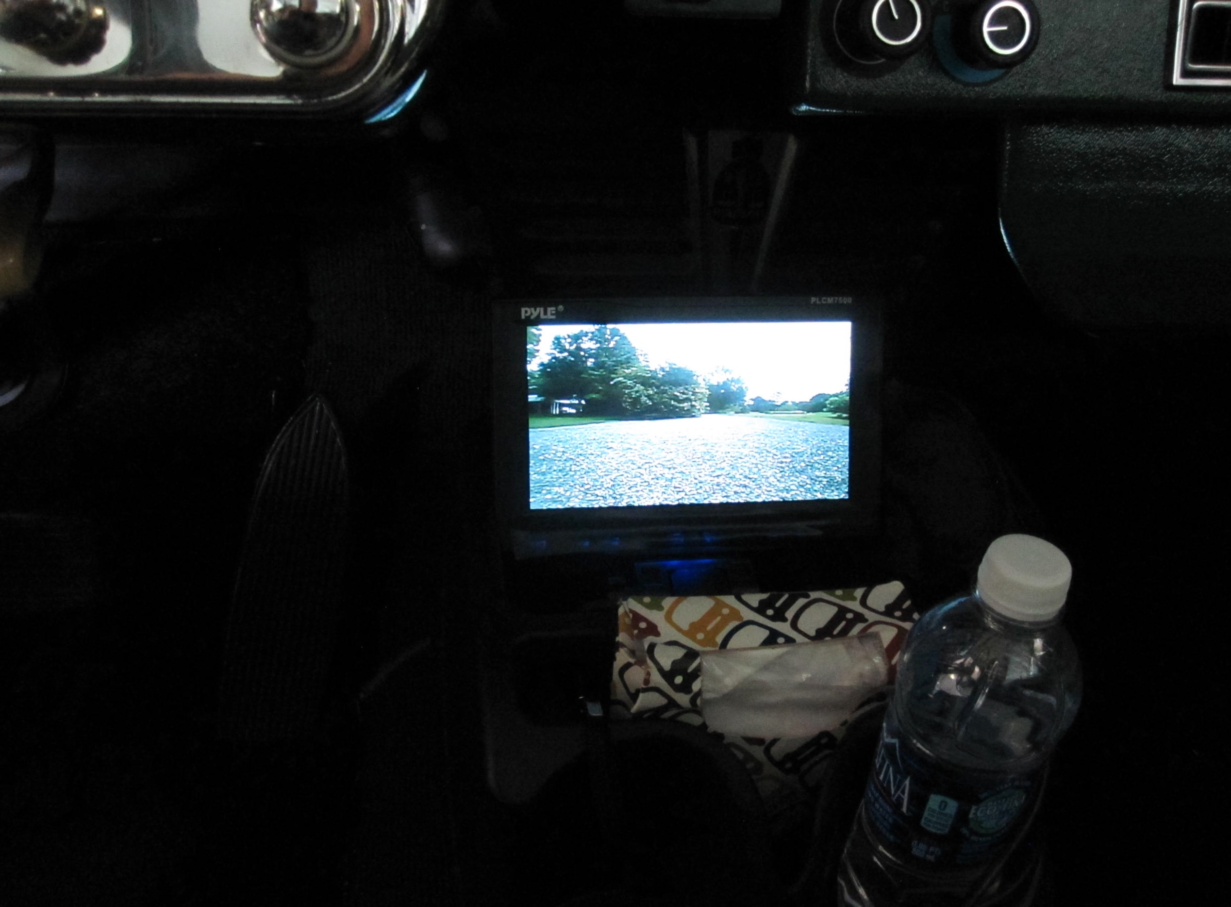 Edit: Electrical scheme is simple: use a SPDT toggle; from center pole to the monitor & camera; from one outer pole to the backup light side of the reverse switch on Hydra-matic (or a lever switch on a manual??); from the other outer pole to a + wire when the ignition is turned on. That way you can switch between video when switching to reverse only or video when you are driving the car. Use a different switch if you want an 'off'. Run wires and then SMILE !!