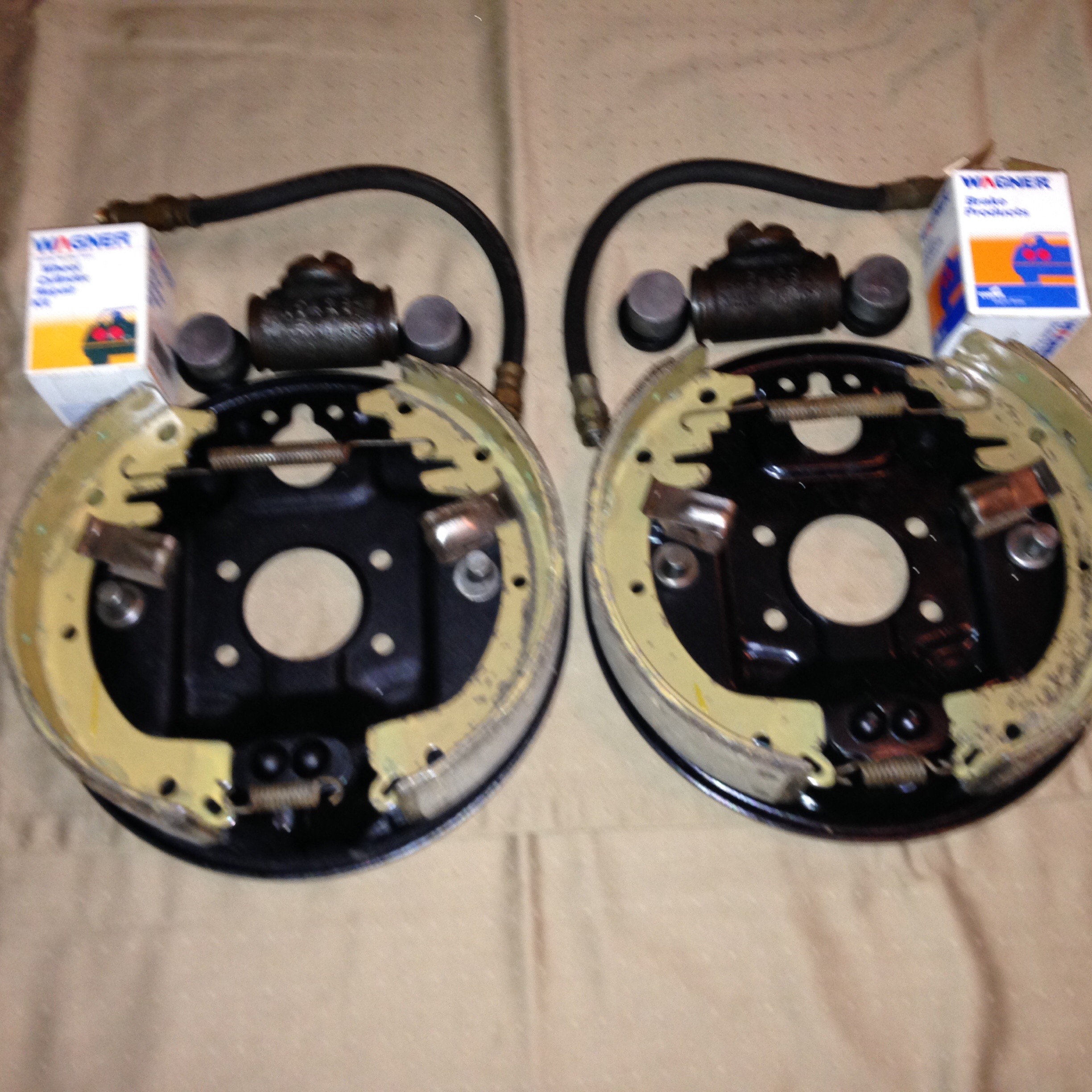 Two Jet front drums/hubs - with bearings and seals - everything in very good shape, lug bolt threads all good. Drum is very good with no grooves. Backing plates with good hardware and new relined brake shoes, almost new wheel cylinders (Wagner 150427 and 150428, casting 150429), boots, pistons and seals and bore in very good shape, bleeder screws are fine, includes 2 new wheel cylinder rebuild kits for later use. Everything is ready to bolt on a car and go. $150 for everything. Will deliver to Chattanooga for free if prepaid.  Thanks, David