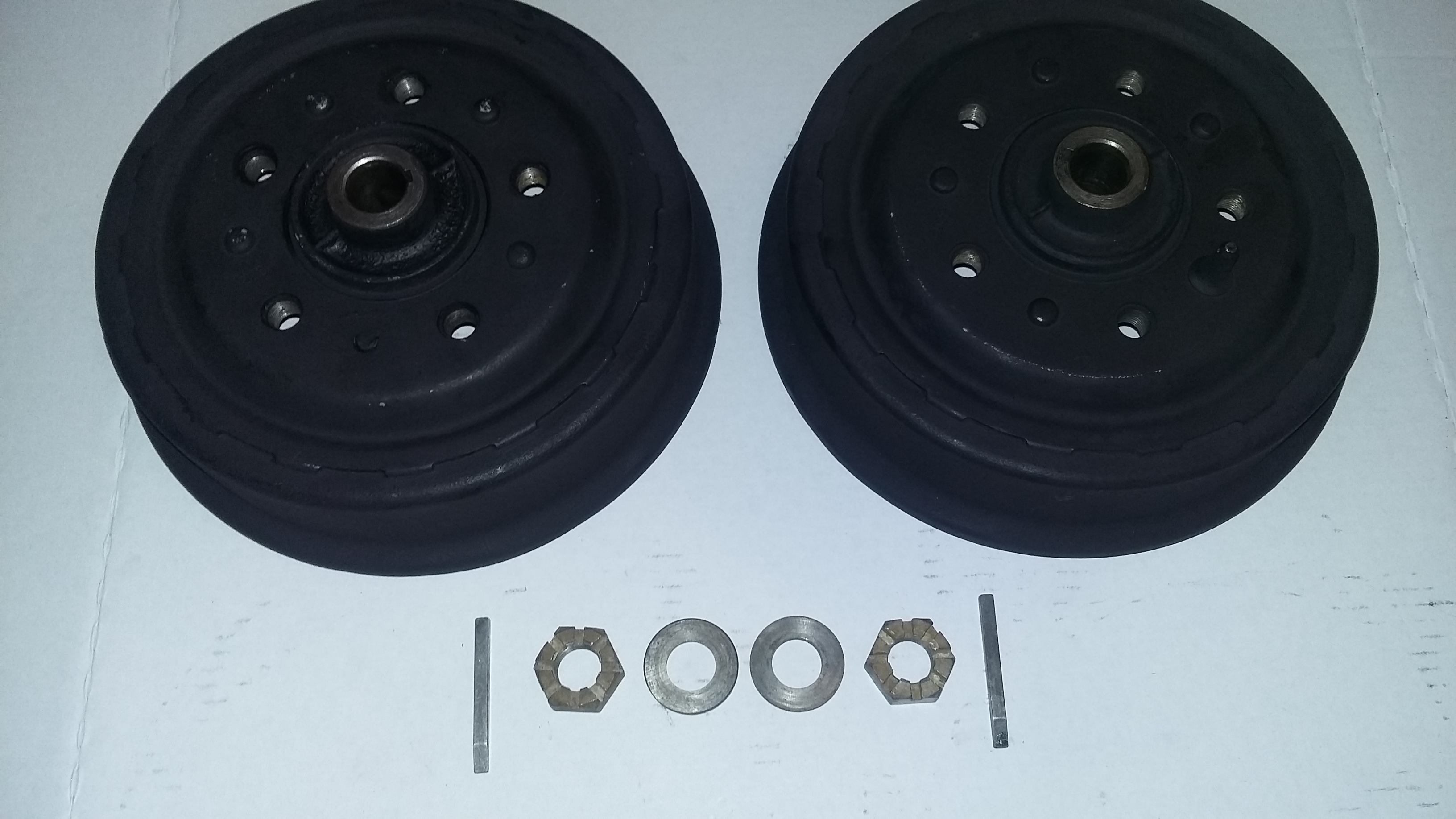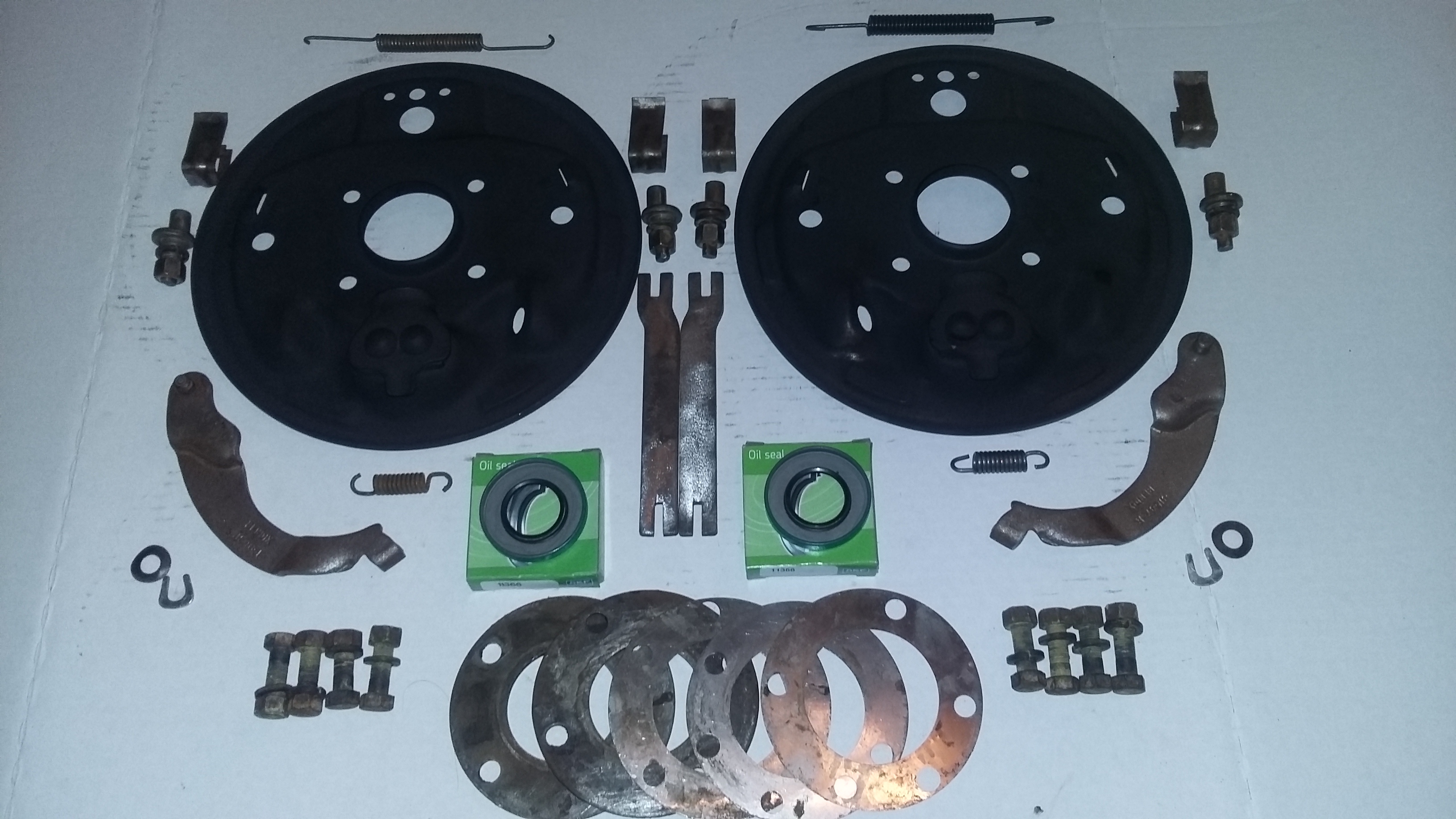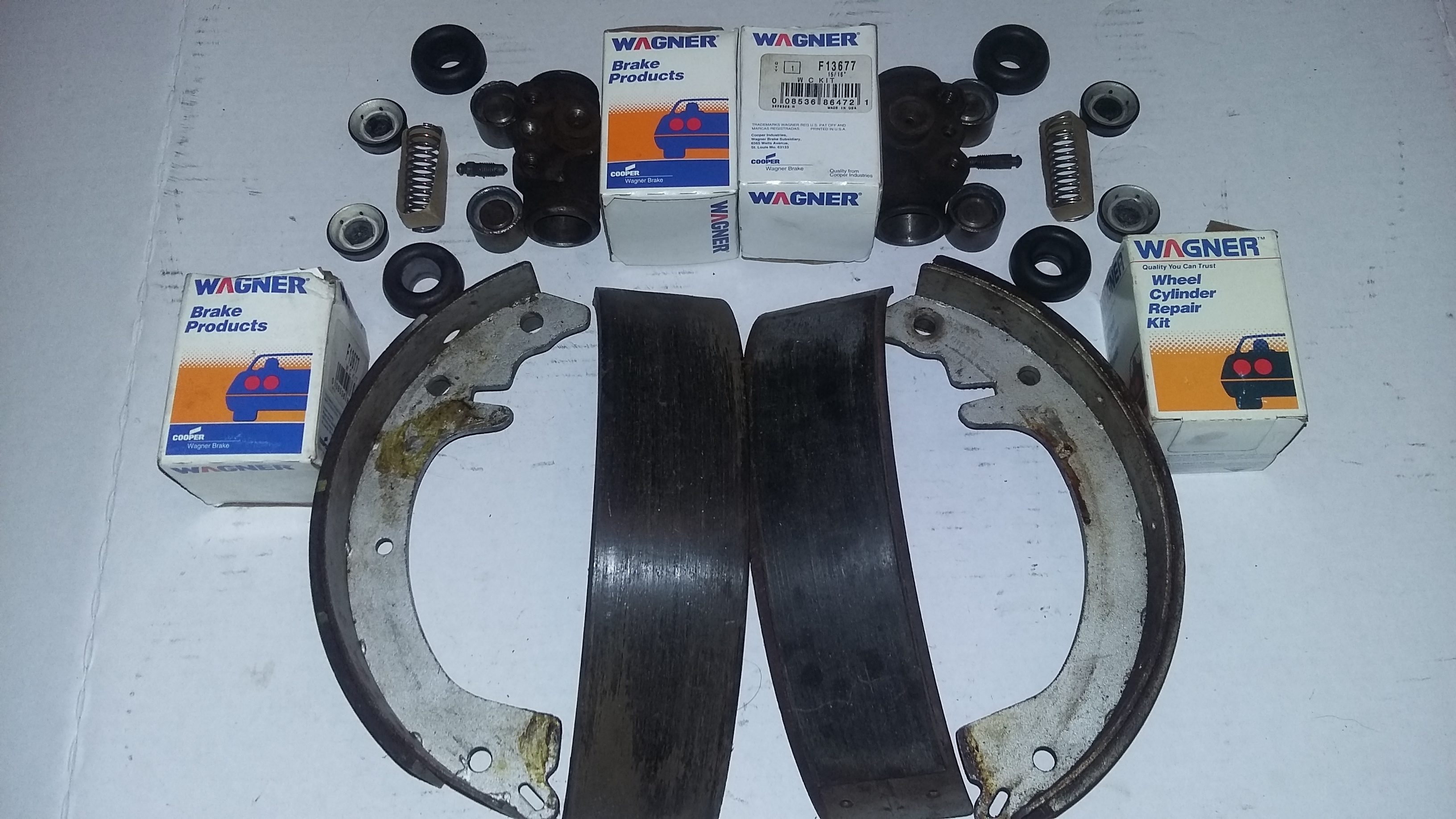 I have two good Jet rear drums/hubs, new wheel seals, backing plates with all attaching hardware, two good bare wheel cylinders(ready to rebuild) with four new Wagner rebuild kits, a set of relined brake shoes - these were on the car but still have at least .160 inch of lining left. They are in very good shape. Also includes the steel brake lines/tee and a new rear brake hose (not pictured). $150 for everything. Can deliver to Chattanooga for free if prepaid. I will be at the meet on June 27th and 28th only. Can also ship for actual cost.  Thanks, David