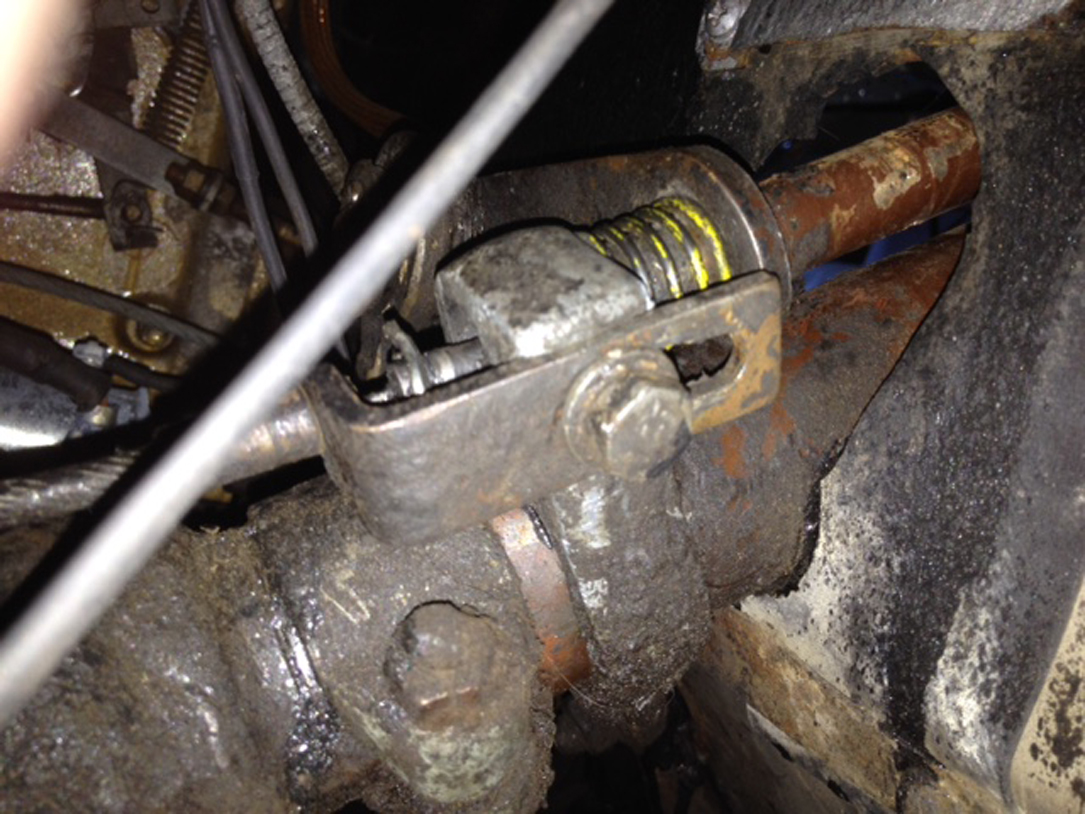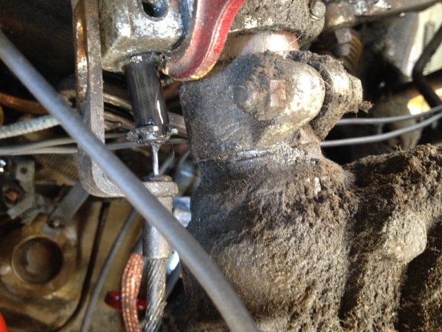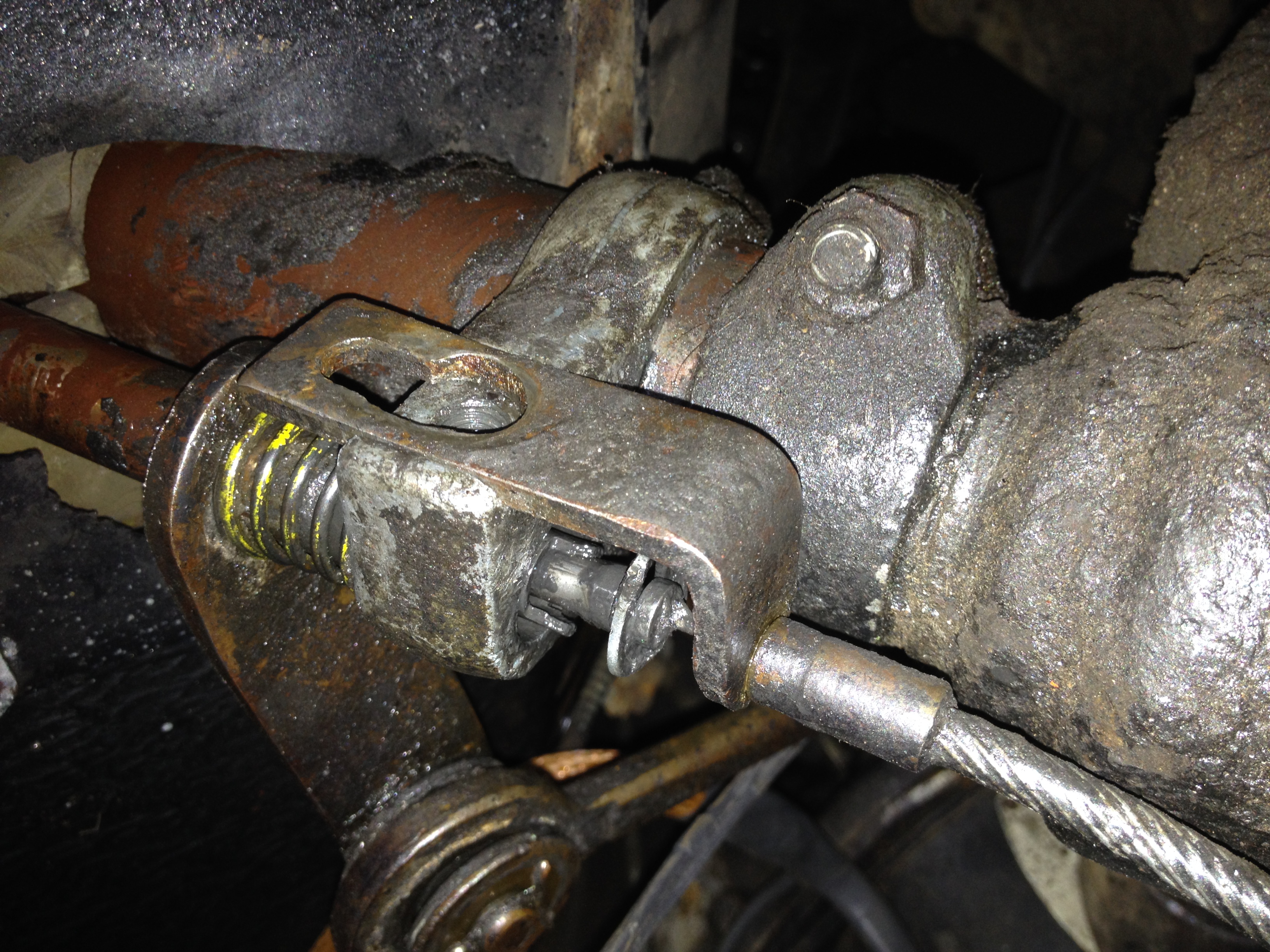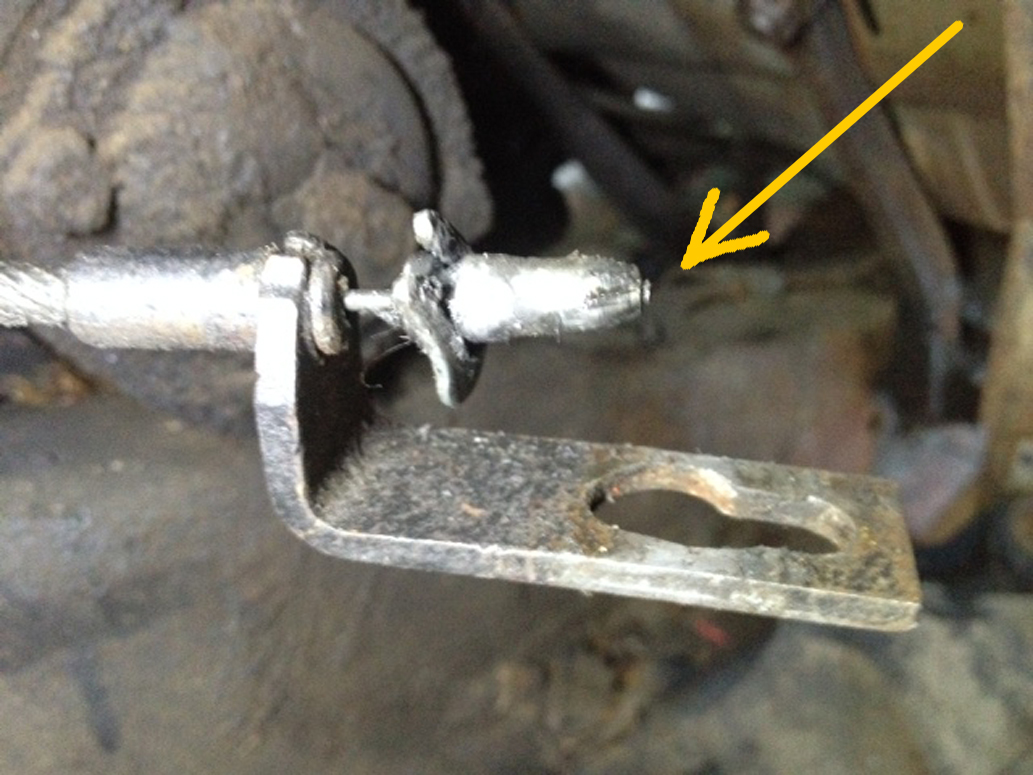 Terrific, thanks Oldfarmer!I put a short bolt in the hole with a head the size of the hole in the bracket bottom.Now one last question....here are two pics of my shift cable, bolted and unbolted from the end of the column. Should the end where the arrow is pointing be connected to a cable up the column?Thanks for your quick, experienced response.0
