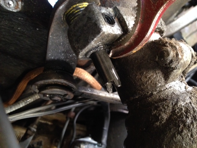 The slot up top (as too the bottom) uses a semi circular key to fit the larger piece to the rod. Being semi circular - when installed should give a round finish so the ends will slide in the tube freely in all positions. See K21-28 in Oldfarmers diagram. It's not binding on the locating bolt you installed???0