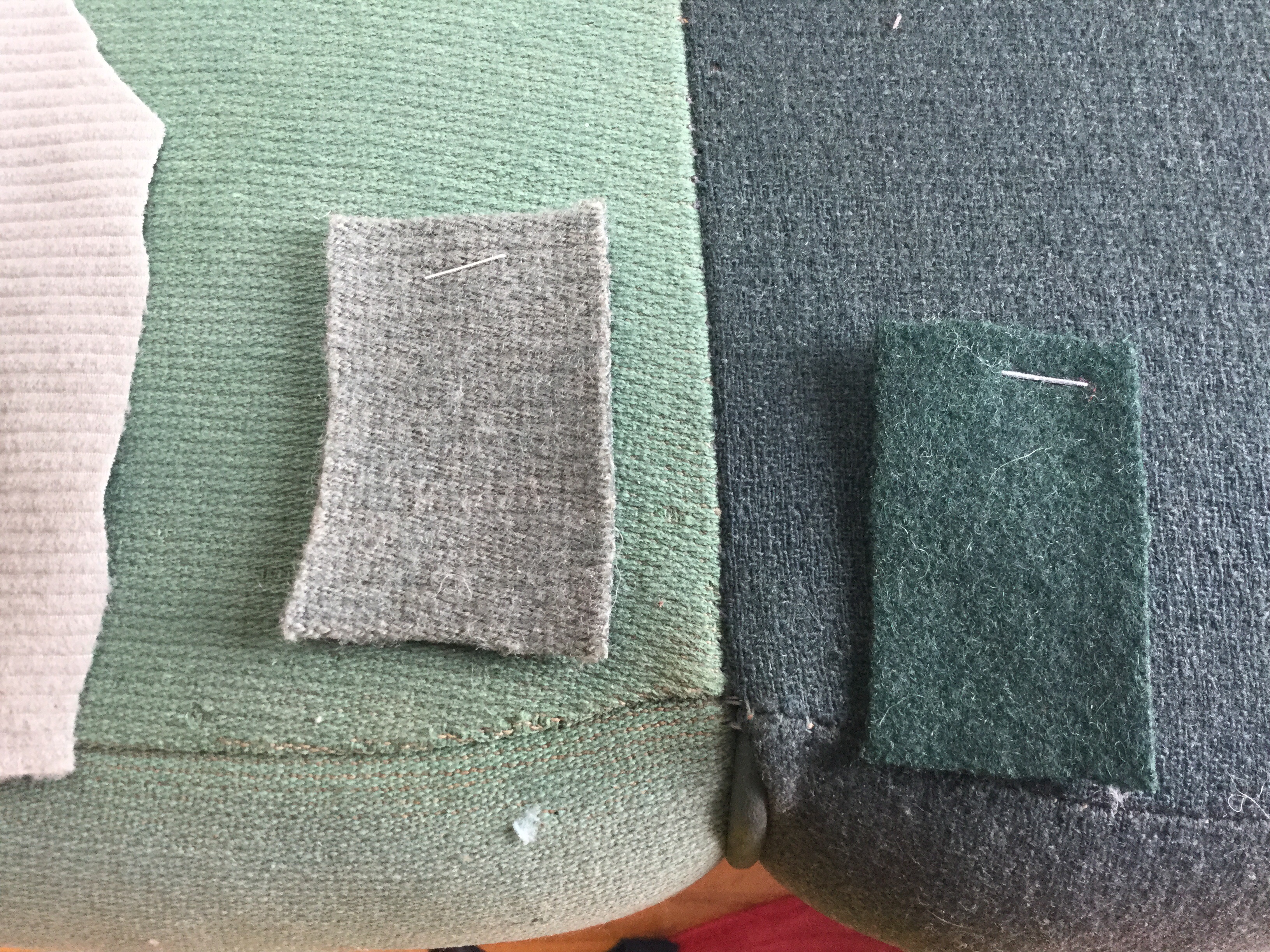 I'll attach a photo of SMS sample (small cuts) ontop of original seat. Also the large sample is the Australian offering... I was thinking if anyone knows how to add more green dye to Australian sample? Perhaps that could be another path. Guess it would have to be UV stable dye etc... Any help is greatly appreciated!