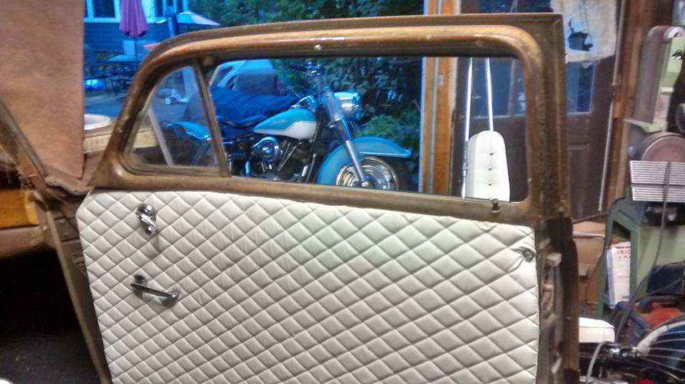 thanks Triman. the chop is a 76 Harley FX that i am contemplating selling to help fund the Hudson. not sure yet if i want to sell it or the franken shovelhead that is in the back of the pics.i made the rear door panels last night. came out pretty good for a hack. i didnt think of the alignment along the door jambs so on the drivers side one its a it off. i ran out of material and plyboard so ill prob leave it as is for a bit but i know it will drive me batty. may see how it looks once the seats are in - which is what i have to tackle next.thank you for the kind words by the way. have fun with yours.0