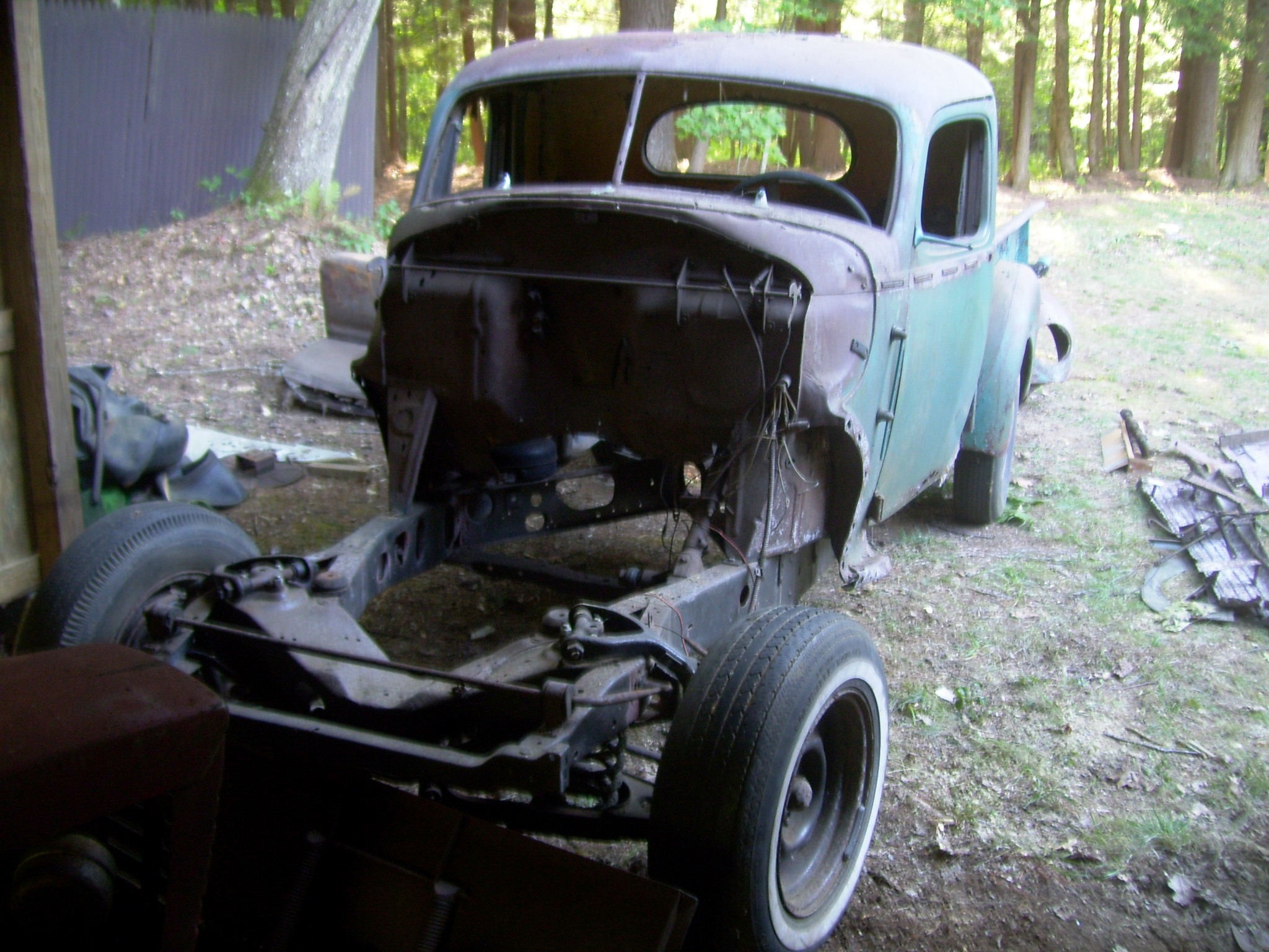 I've decided to sell my other pickup. It's a 46. Restored chassis and brakes. Front converted to stepdown brakes. Solid sheet metal box and fenders with some easy dents and surface rust. A little wind at the bottom of the doors. Needs a new floor. Non running 212 or rebuilt '54 262 with .040 overbore. Price adjustment based on choice.