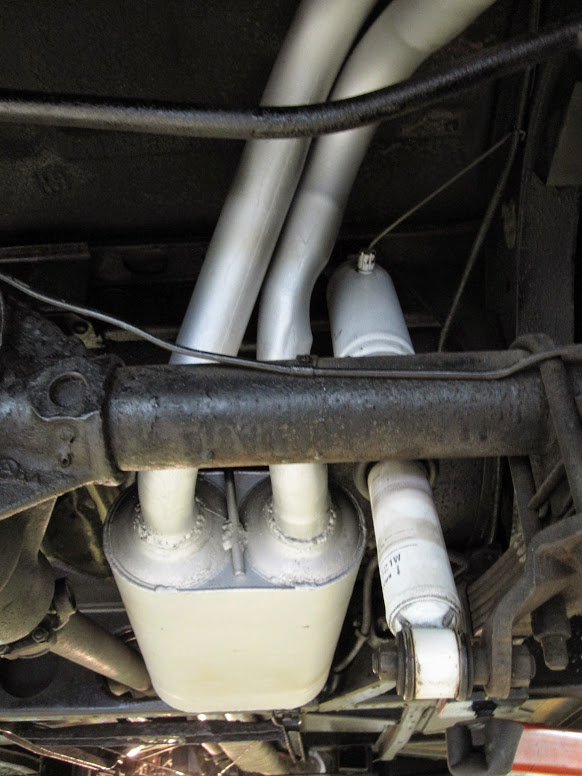 I did pretty much the same thing, but I had it twisted "over-under" at the fuel tank/spring shackle, then twisted back to "double-barrel" at the bumper.0