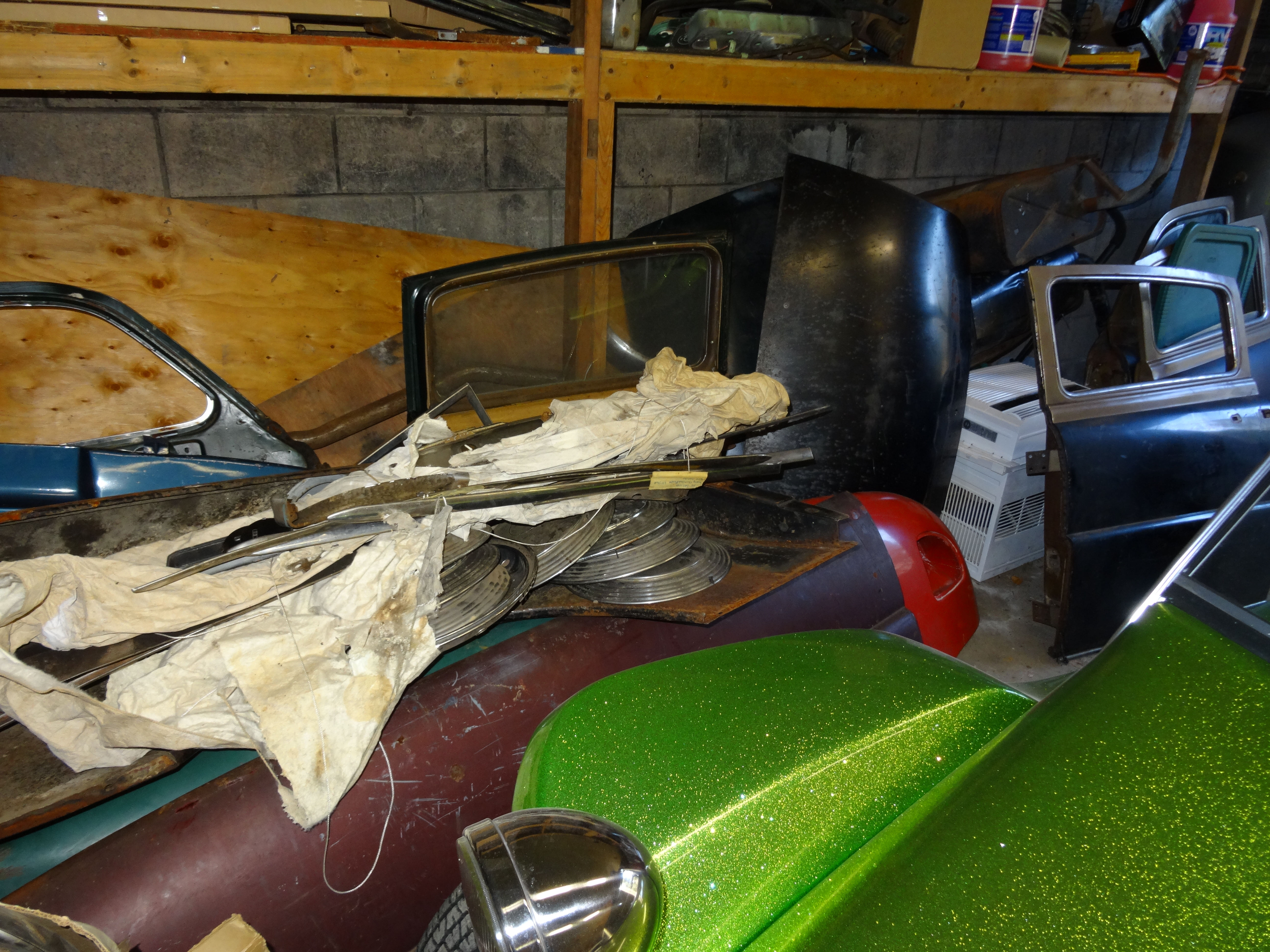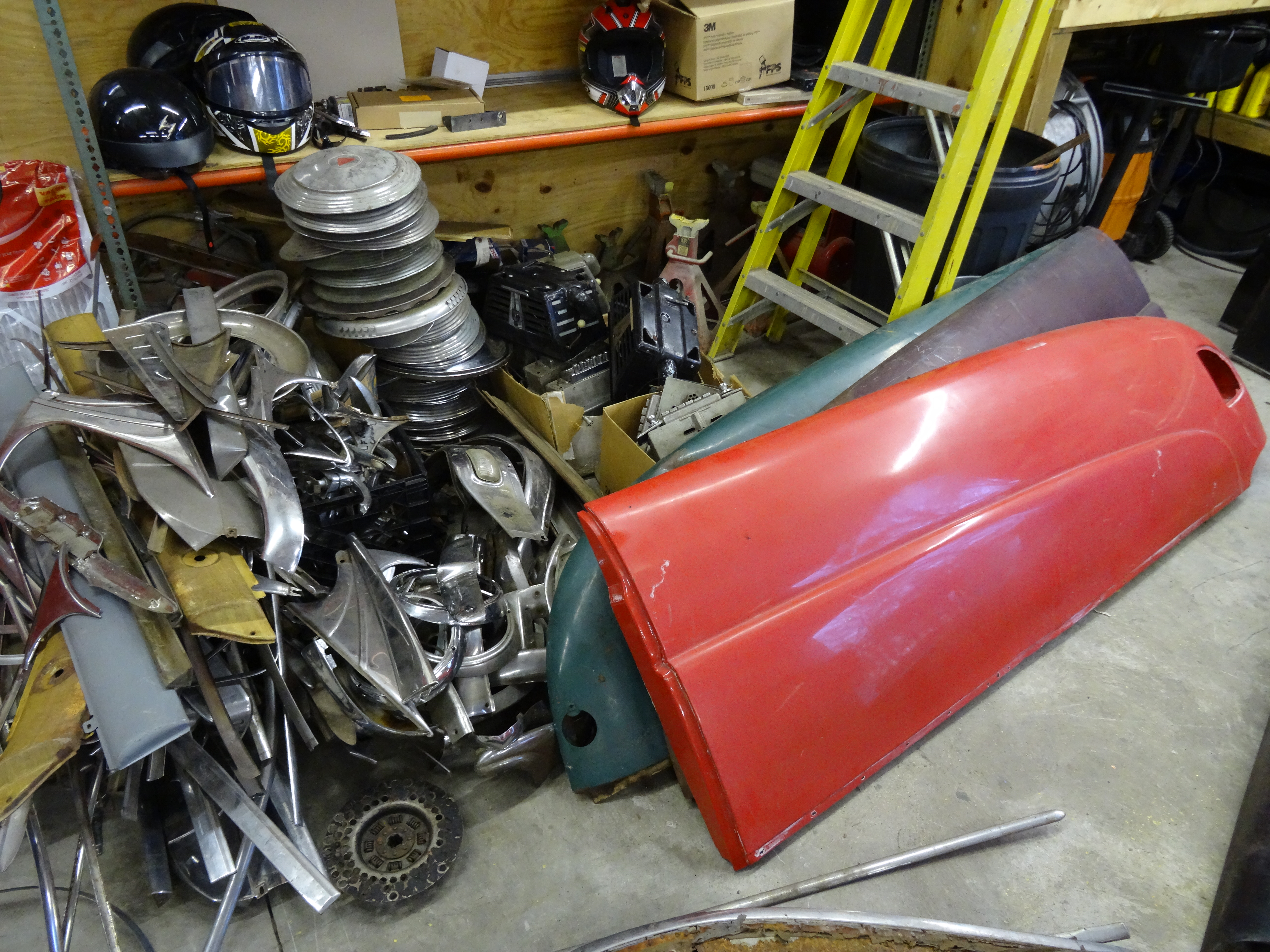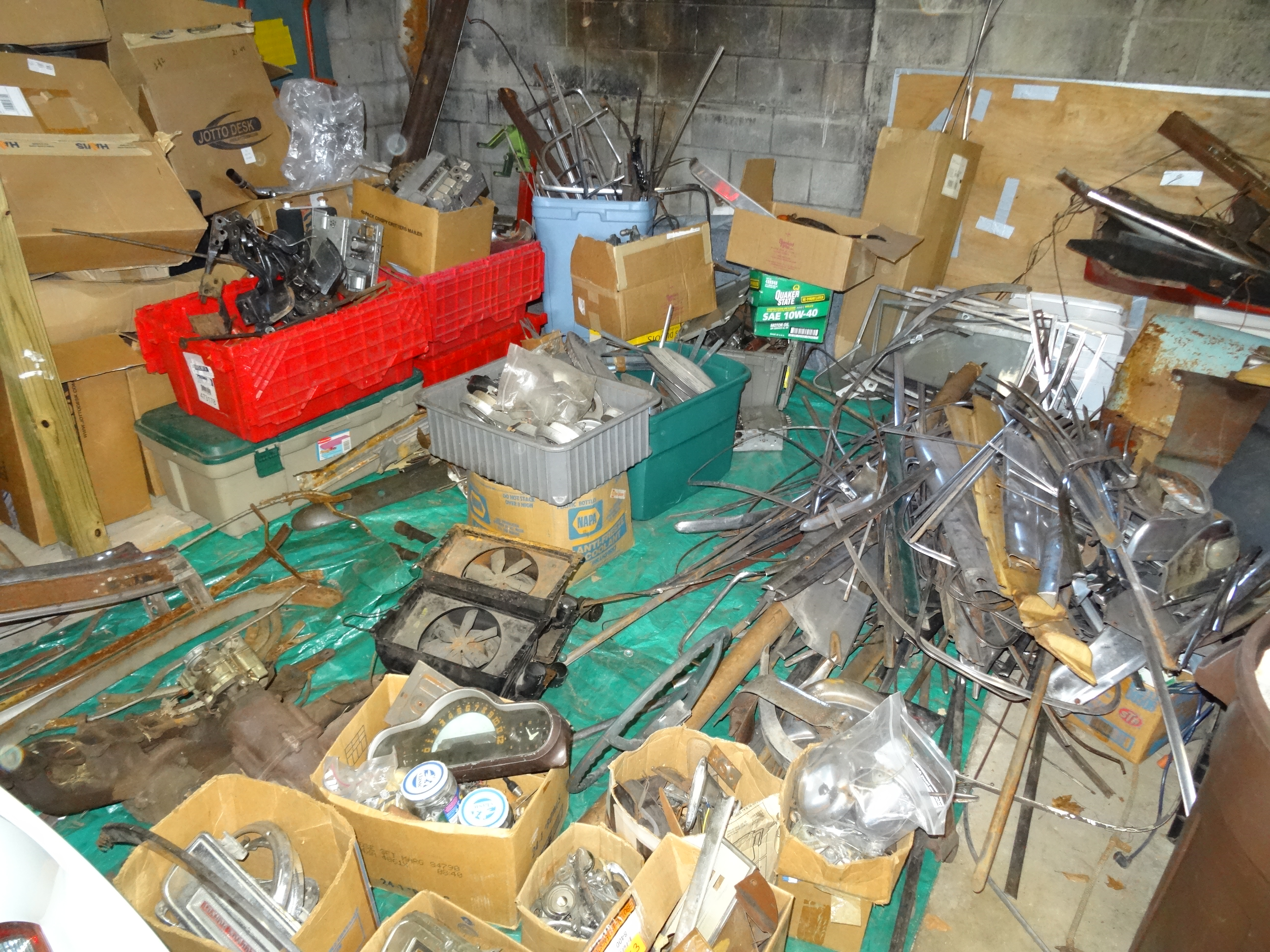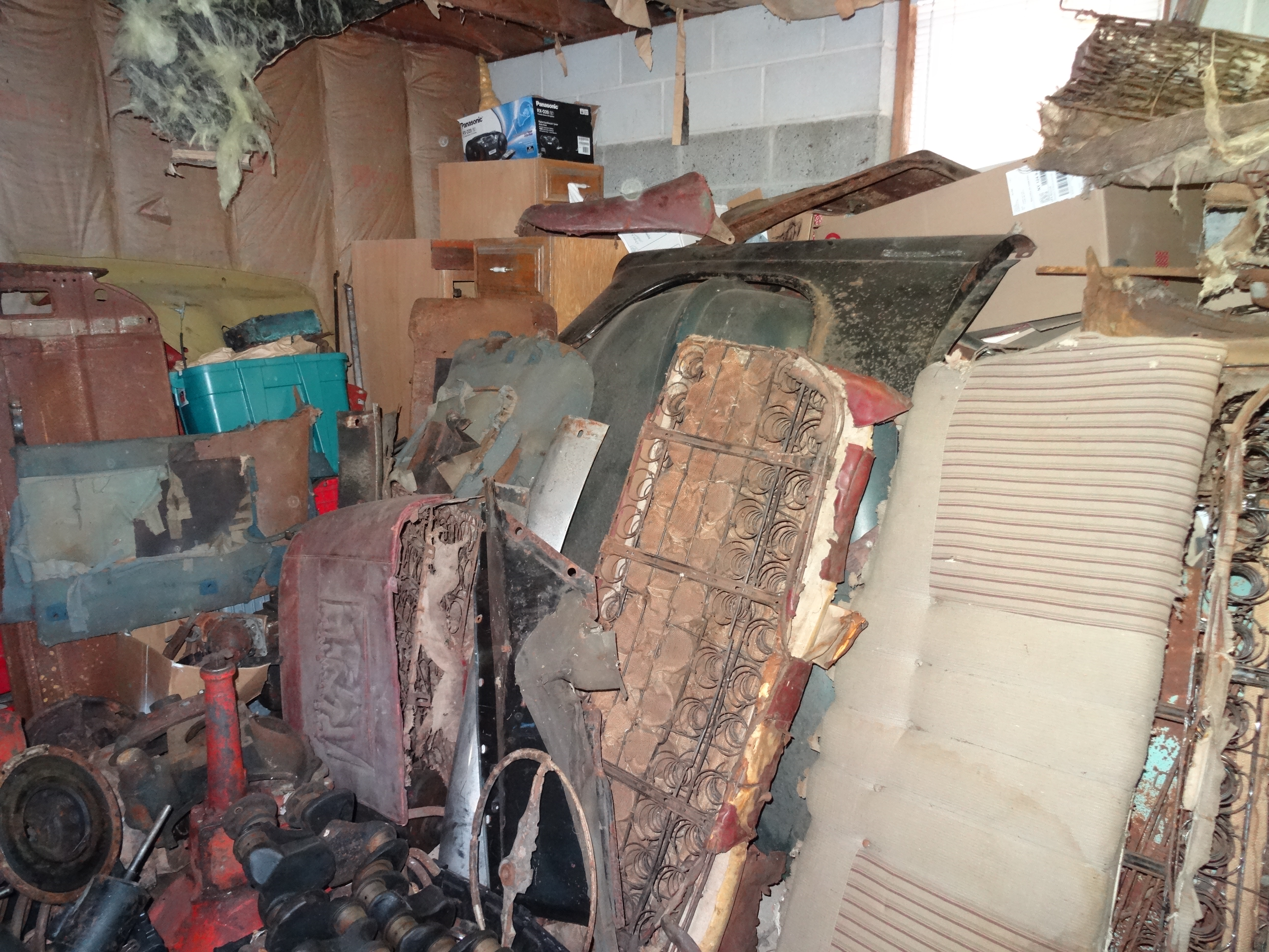 looking to sell in one lump sum-lots and lots of parts-storage is no problem-bring a huge box truck!! can help load-there is a lot of parts here-the red quarter panel as well as the other side stays with me  as well as one radiator 2 oil bath twin H air cleaners and a few other pieces that i want for my 51 convertible-there is convertible top pieces as well.