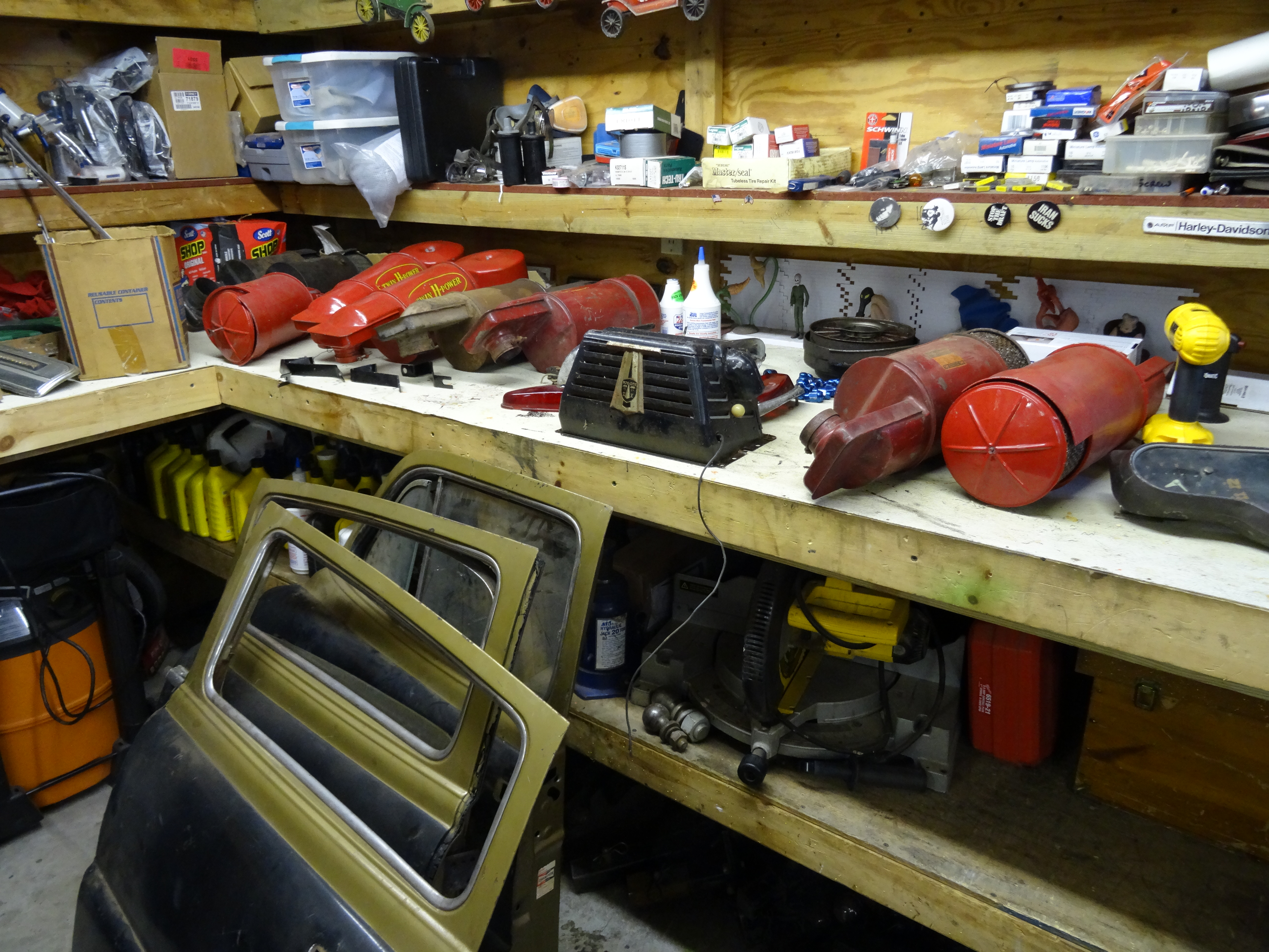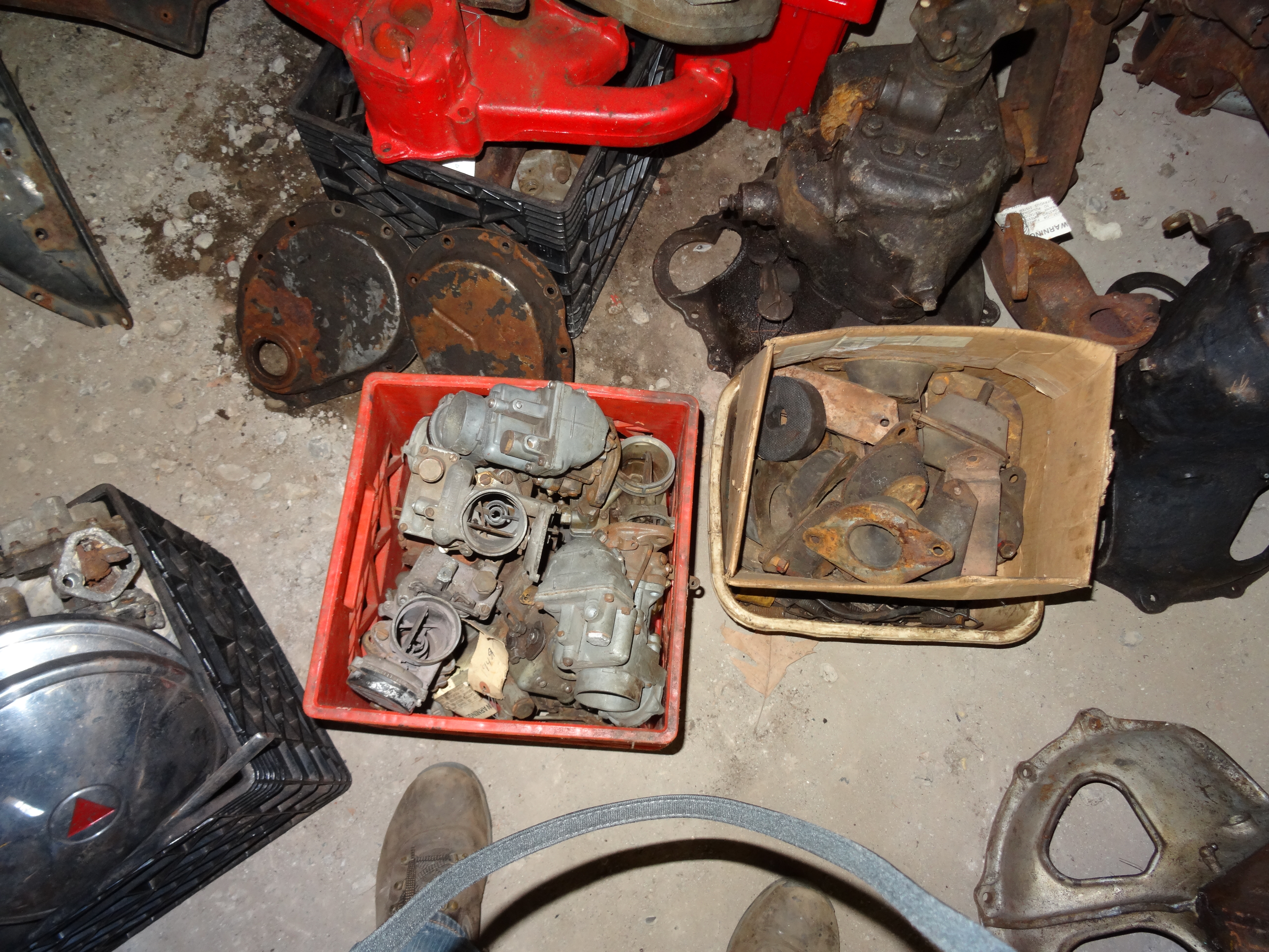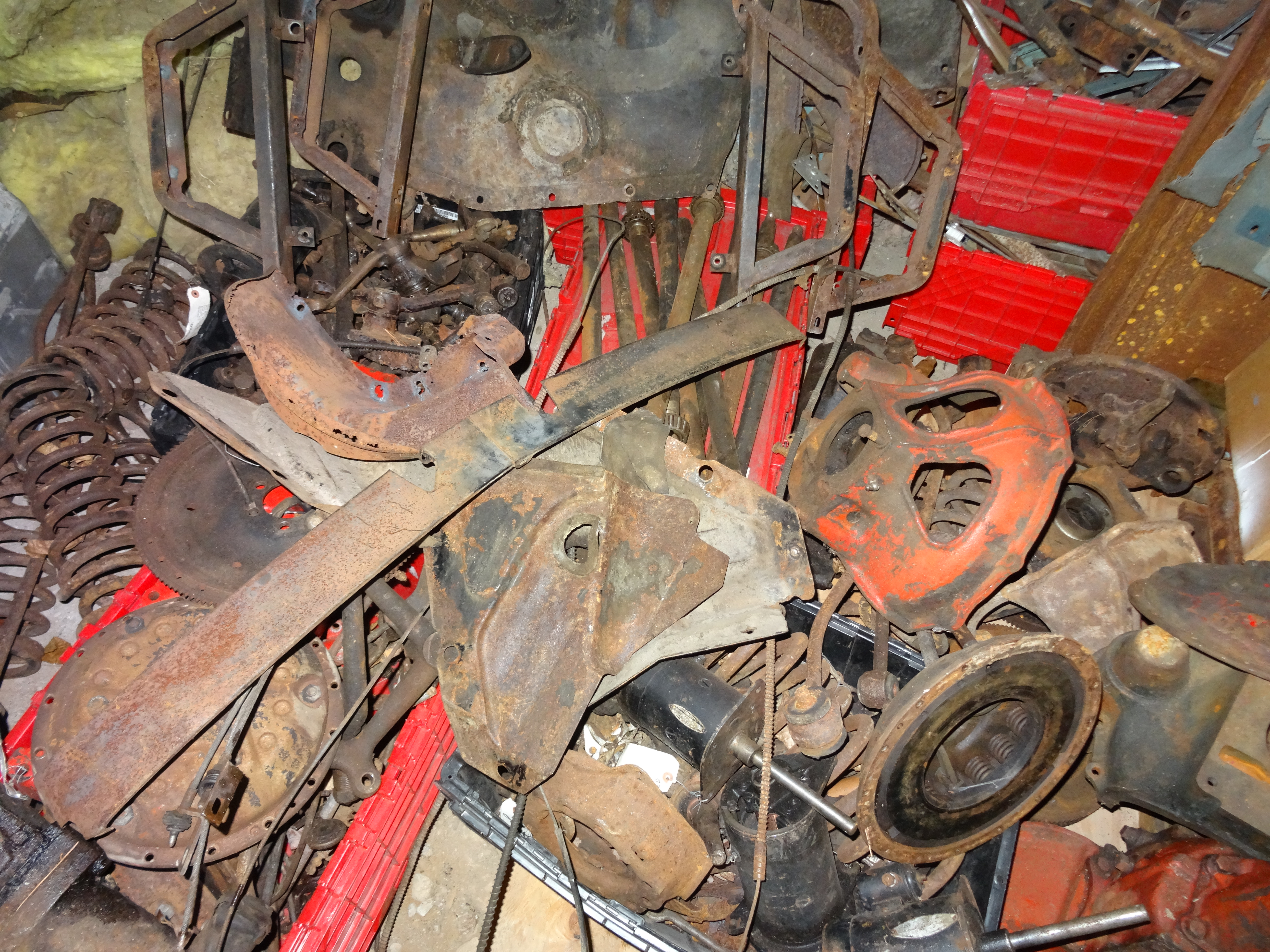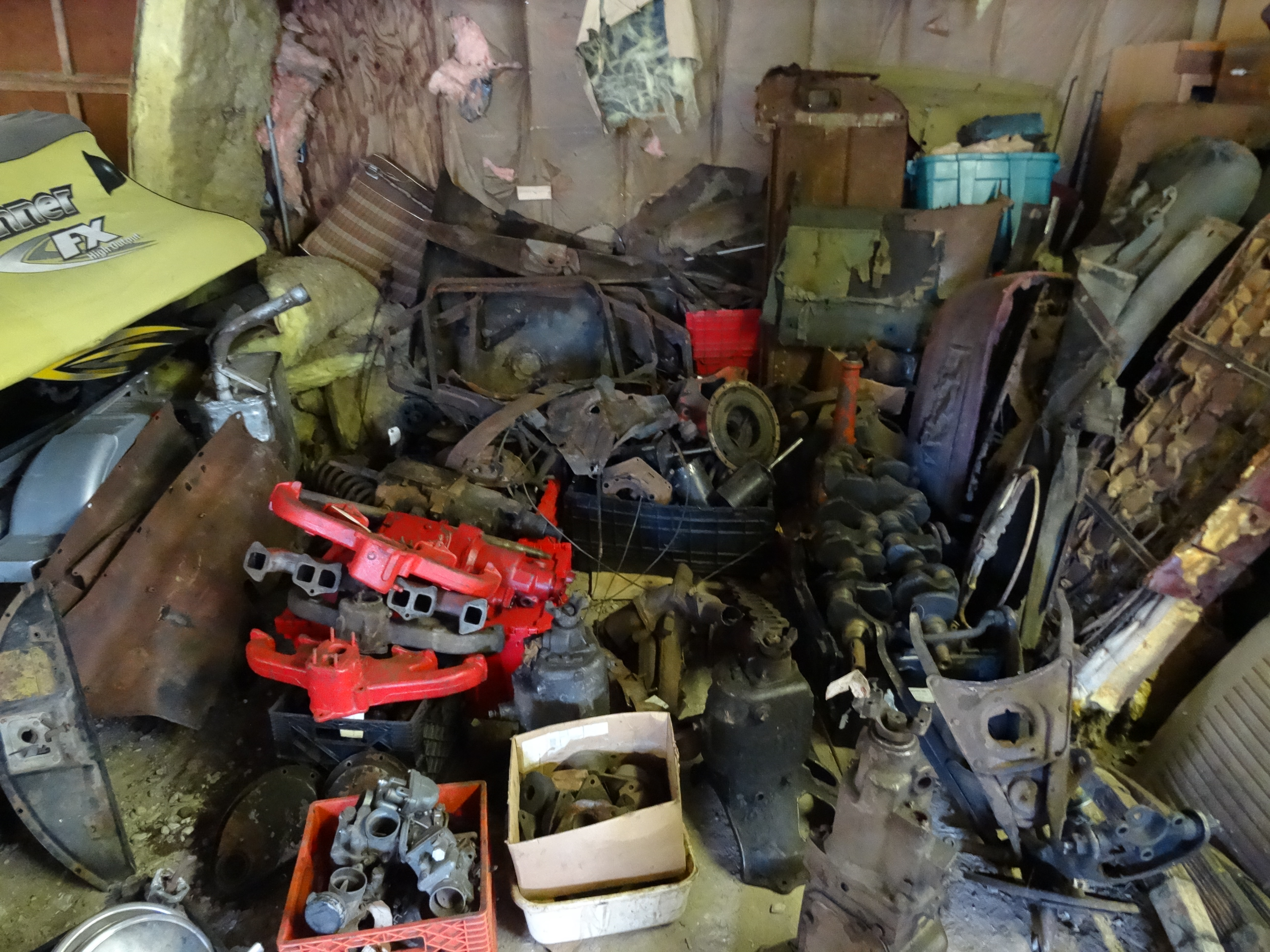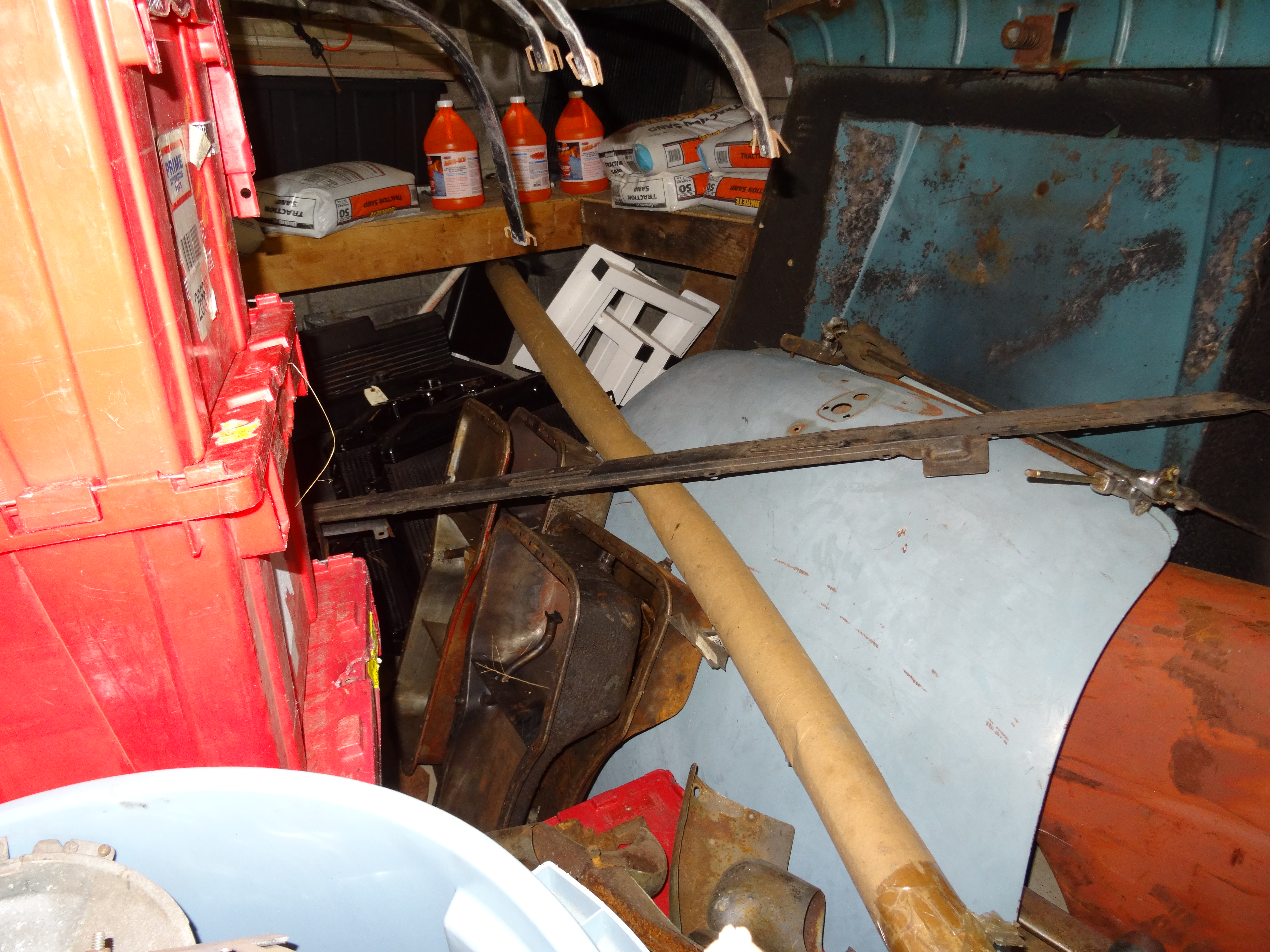 looking to sell in one lump sum-lots and lots of parts-storage is no problem-bring a huge box truck!! can help load-there is a lot of parts here-the red quarter panel as well as the other side stays with me  as well as one radiator 2 oil bath twin H air cleaners and a few other pieces that i want for my 51 convertible-there is convertible top pieces as well.
