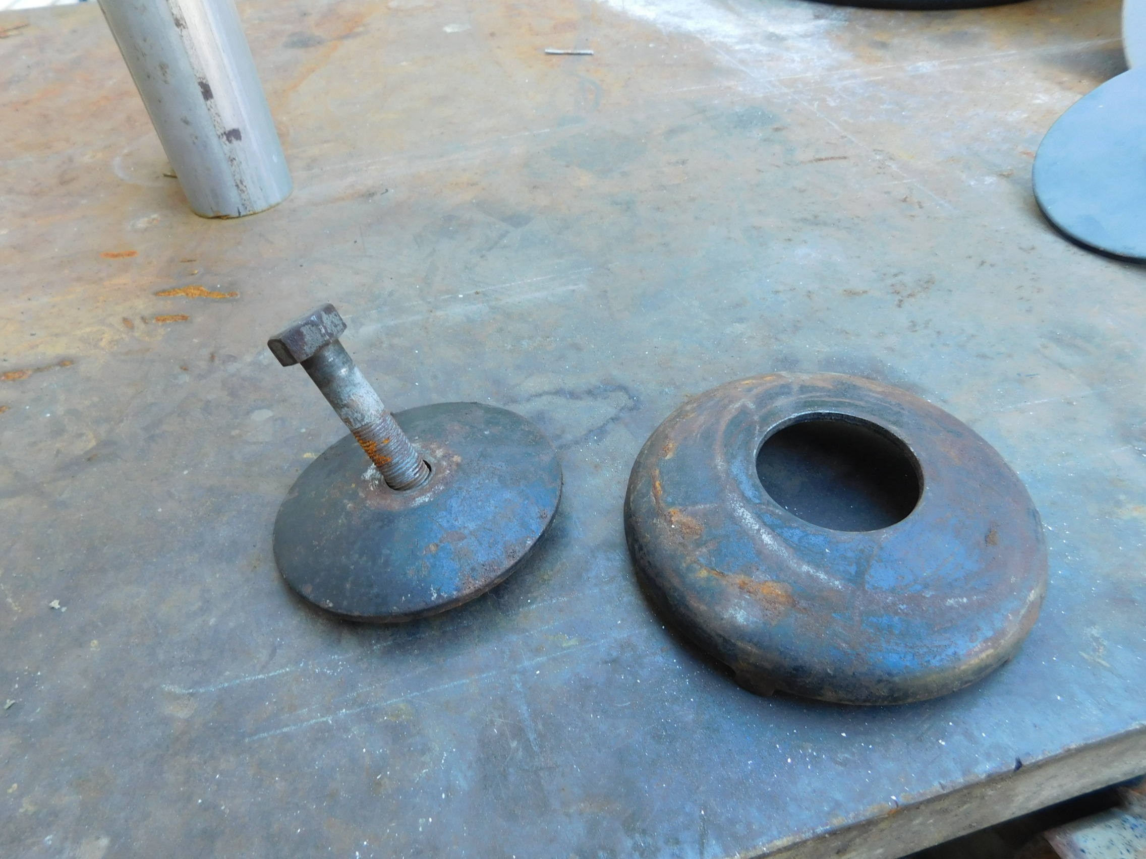 The first picture are parts laying in the trunk of my 53 Wasp coupe. Looks like cup goes on inside wheel side and bolt/screw comes in from the front