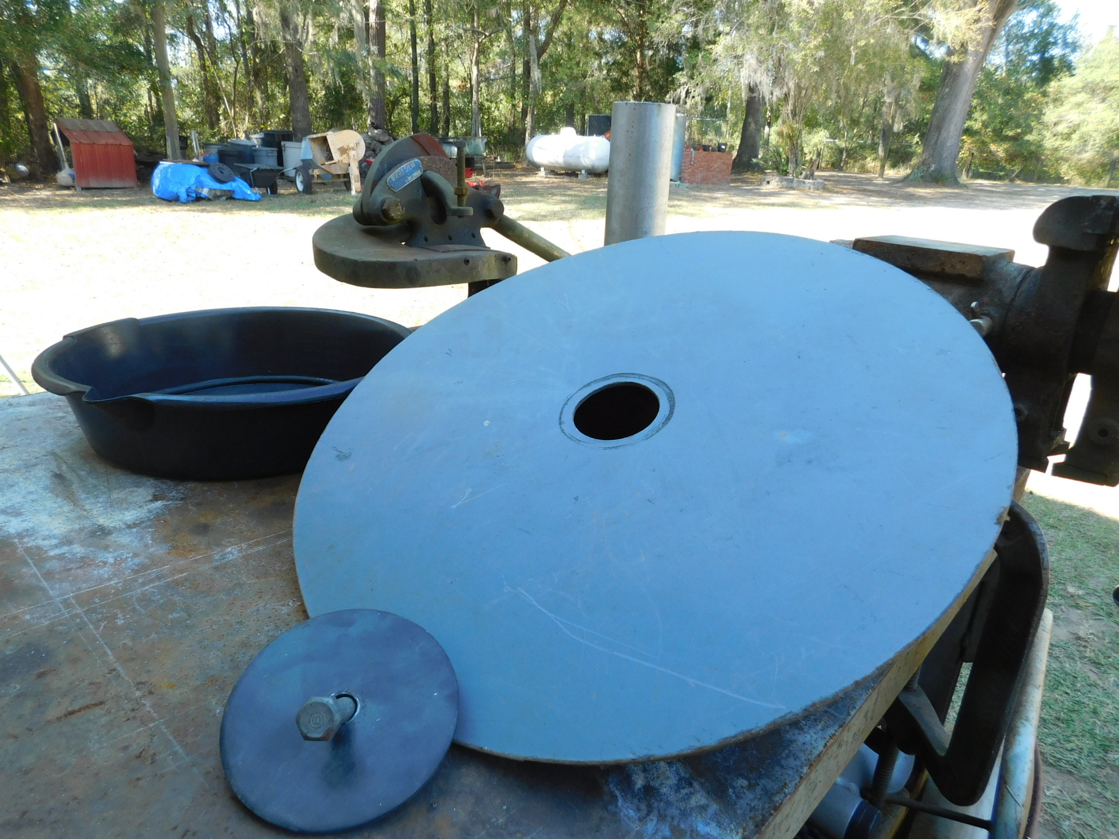 The second picture is a large cardboard cutout and a disc clamp with bolt out of a 53 sedan laying in floor.