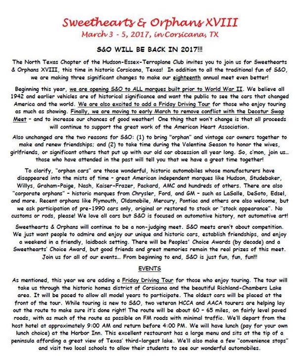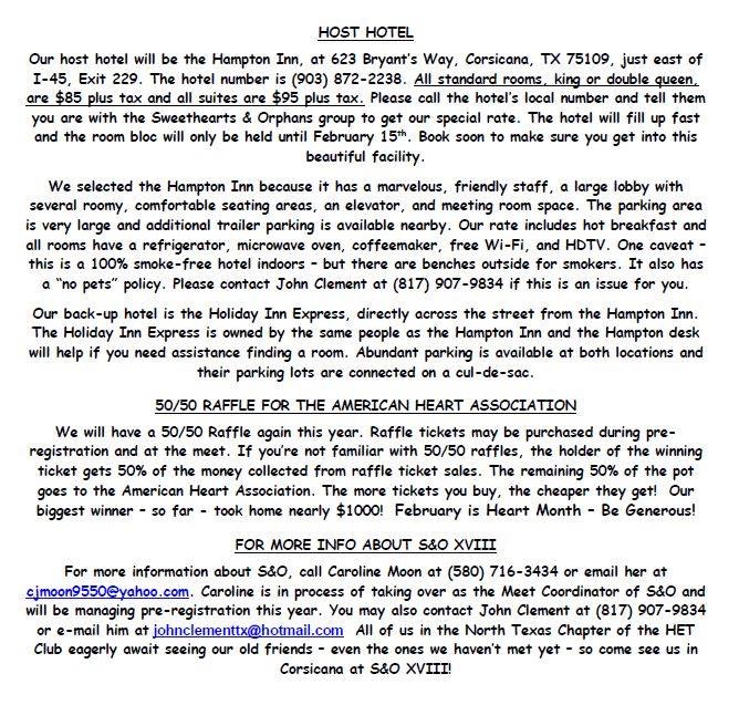 Come join us and have fun at the 2017 Sweet Hearts and Orphans Meeting