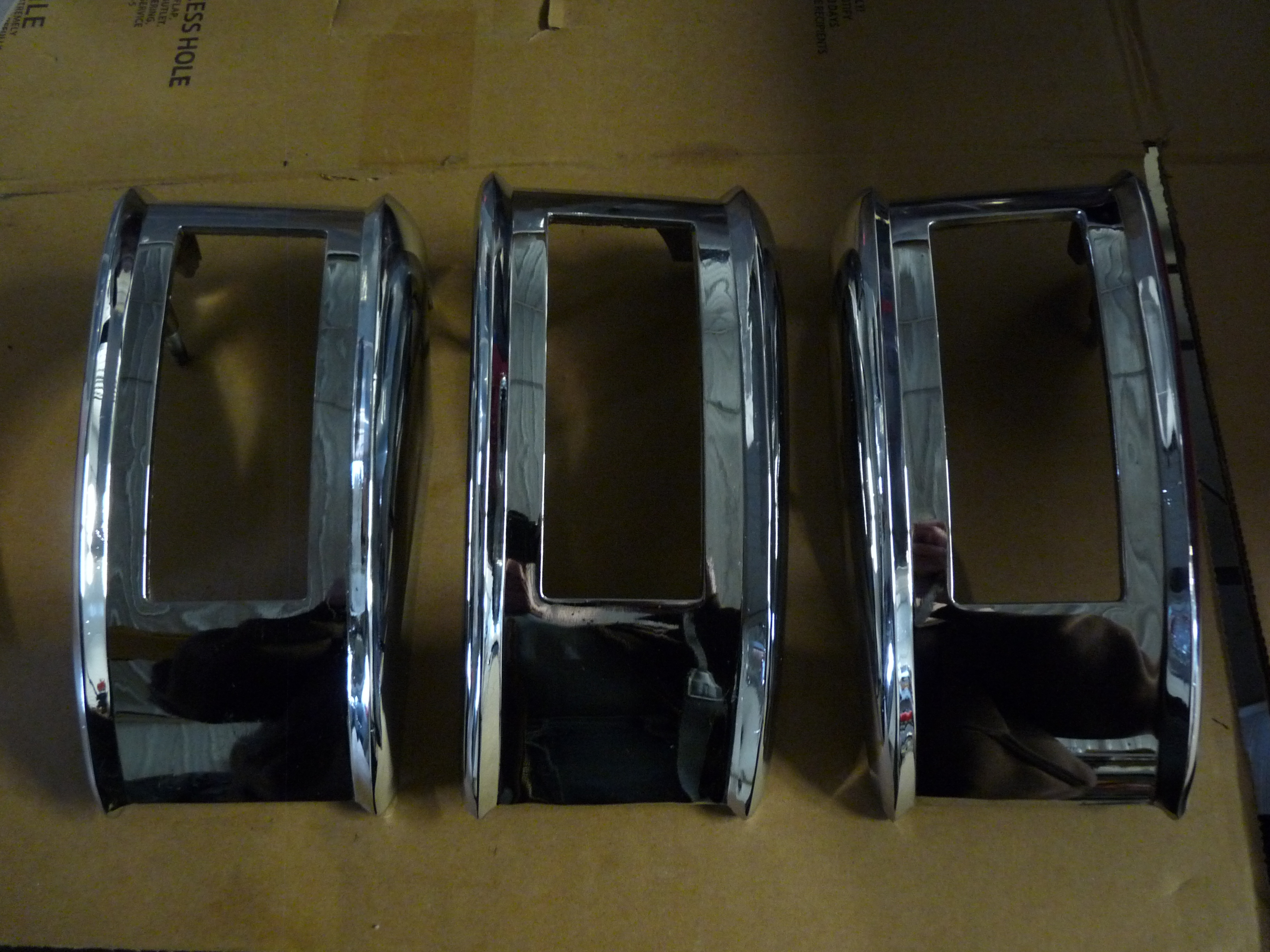 2 left,1 right Parking light housings,fit 5A,6A,7A,8A,where clear coated from factory,finally got all off.Very few minor bubbles under chrome in spots,but very good condition. $45 each.