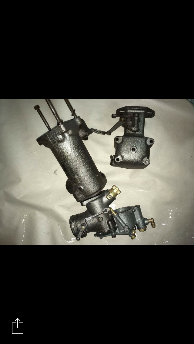 Went through all of my parts and pieces and it appears That I'm short the whole  carb set up ( The water pump is not pictured but I do have it as well as the impeller)  Shaft does seem a little bit beat up but we can all get to that and others once I find all of the relatively  (few) missing parts  :)  P.S. any ideas what other cars may have  used this model of carburetor in case I can't find one through this group ?)