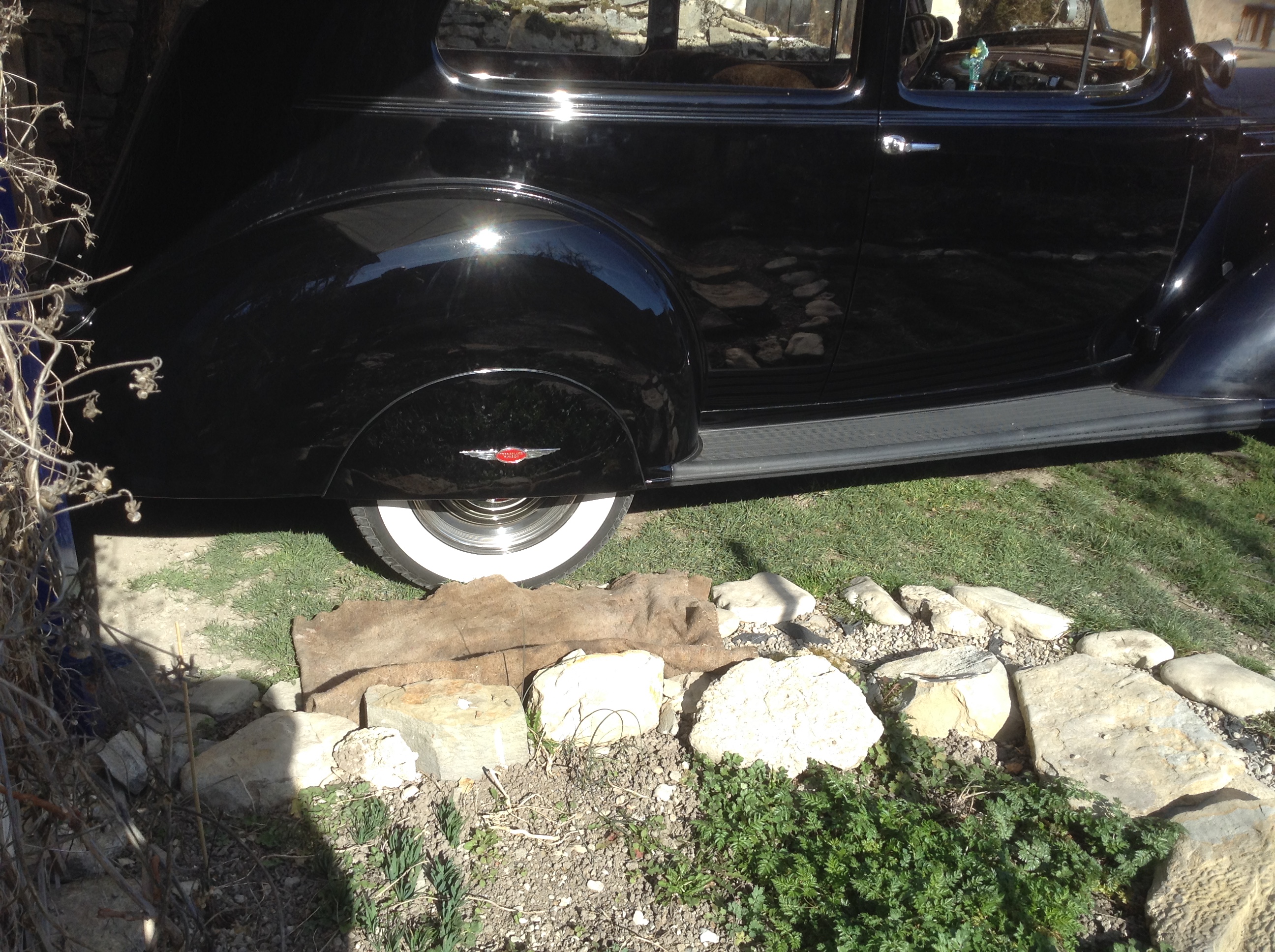 Finally, here's a pic of it to show you it's still in good health! In fact it reminds me to ask - I took the fender skirts off about 5 years ago to paint them while I still had the bodyshop, and then the move to France got in the way and I didn't have time to refit them. Now I have got time, but I can't remember how they go on! When I flip the catch at the bottom the clip at the top engages, but that doesn't hold them in place. And I also have an Allen key that Duke gave me, in a little bag labelled 'fender skirt key'. But I can't remember what I am supposed to do up (some Allen bolts I assume!) or where and how they fit! So after the pic was taken I had to take the skirts off again!