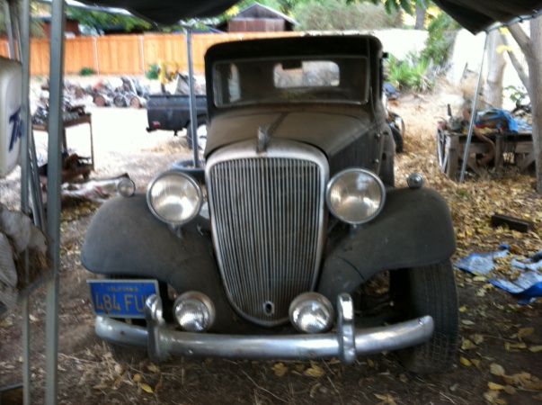 I'm putting up my 33 up for sale. I bought this 5-6 years ago from California. I'm out of space and need to let it go. You won't find another more solid and rust free car. It has a 51 or 52 straight 8 in it now. I can go on and on for quite a bit but would rather talk to anyone interested to give a full low down. I'll let it go for $10,500 Thanks 314-922-0041. John. The pictures are from California when I got it.