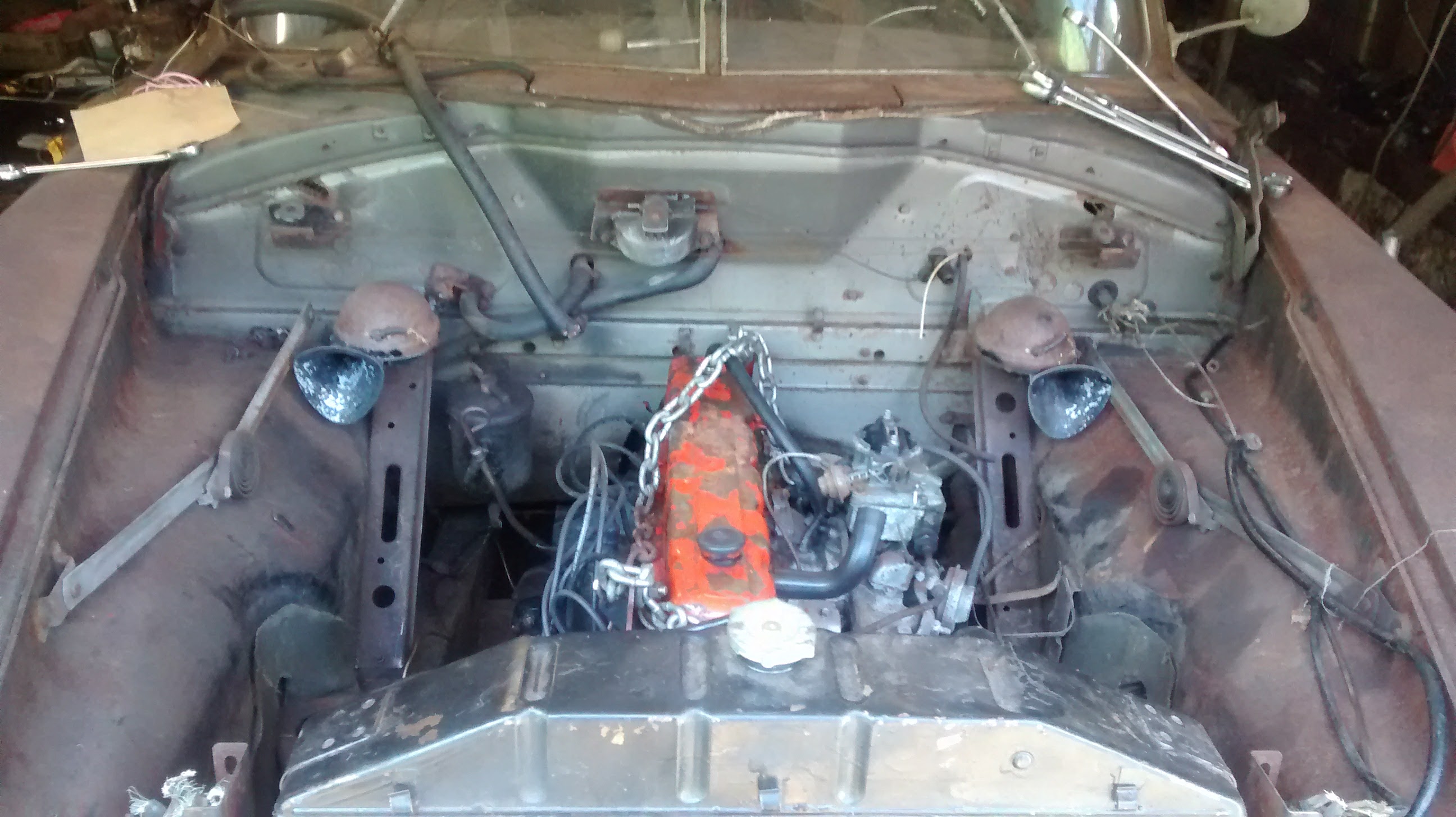 With the Chevy 6 It gets crowded on the drivers side (left) with the exhaust manifold and all the other stuff, brakes, clutch etc. Be careful with how much you cut out of the Hudson crossmembers.