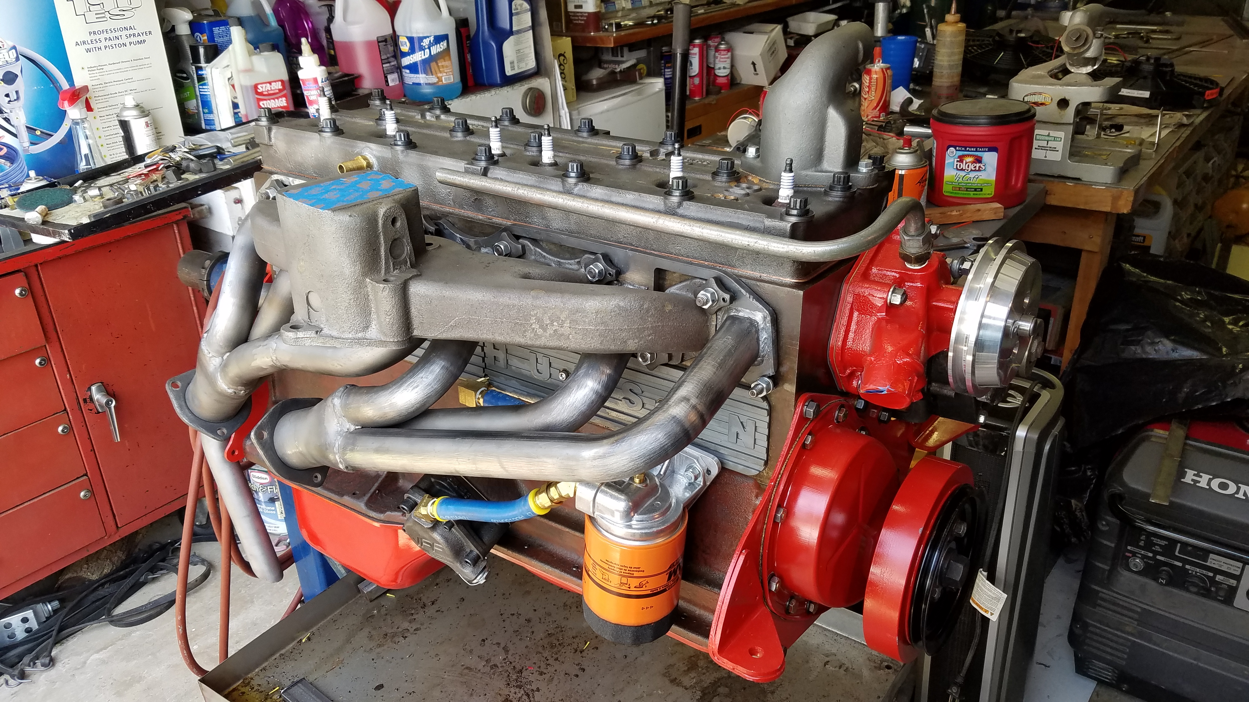 Yup, Frank's full flow setup.  Dampener is from a Chevy 350, modified to fit the Hudson crank and a adapter ring for the front cover to use a regular Chevy front seal.
