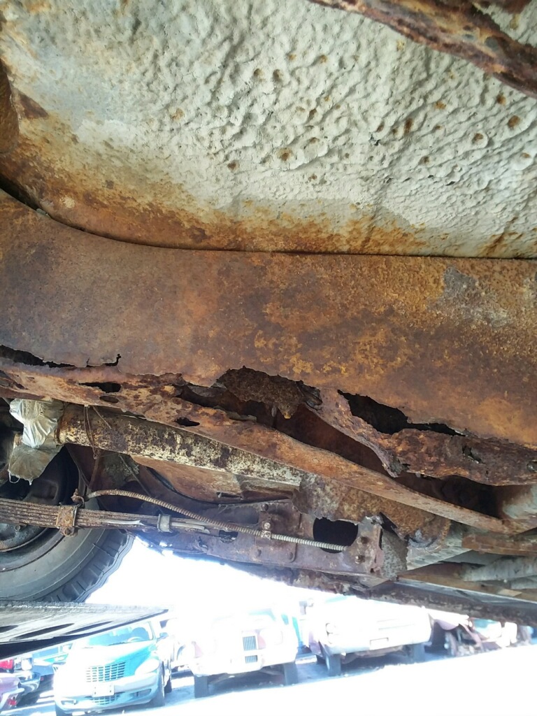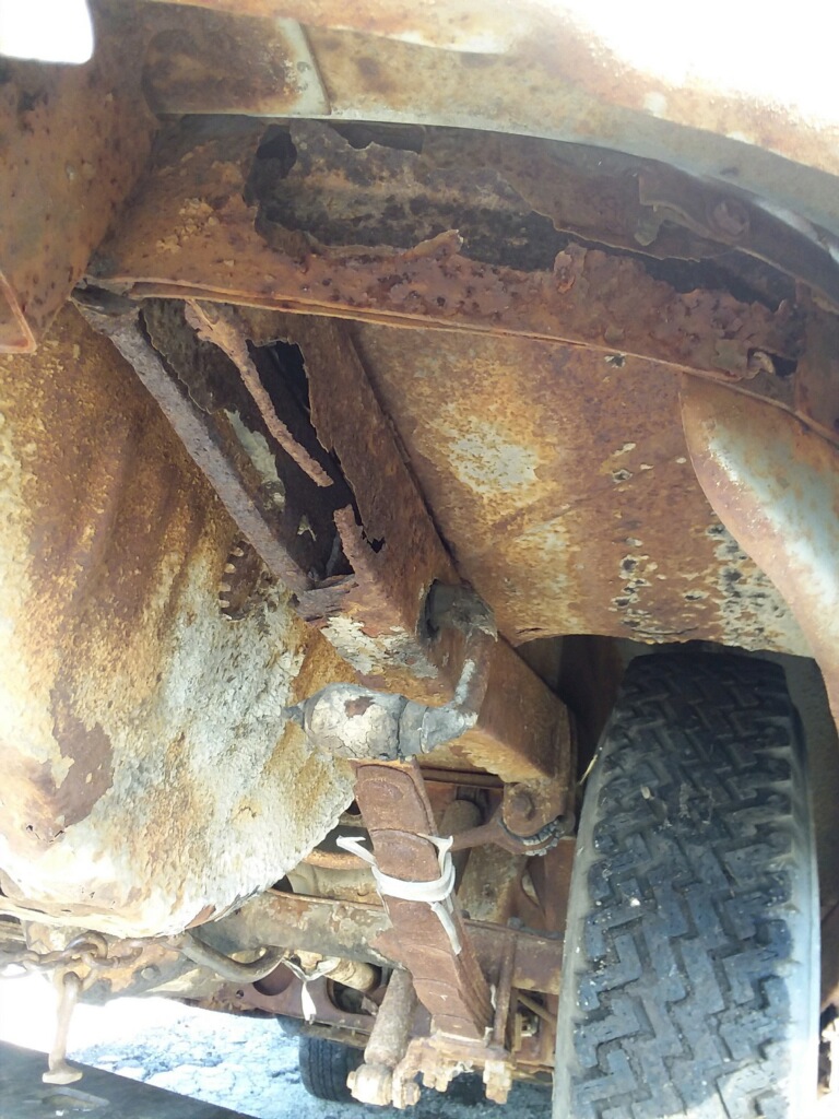 Ive taken a closer look and all the frame is solid but the frame in the rear from just after where the leaf springs attach back under the trunk floor is Pratt’s much gone .