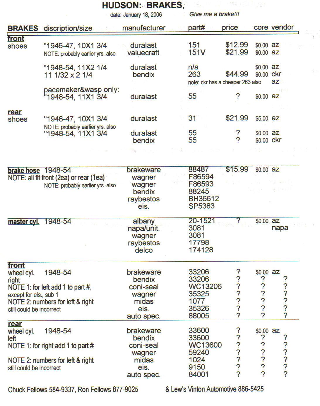 Looking for application or part# for rear cylinders for my 51 Pacemaker or verification on what I found. I researched and found that cylinders from a 1971 Ford Thunderbird are the same size(15/16. These also fit other Ford models plus AMC, Jeeps, Nash & Hudsons 1956,57 plus more. So I purchased a couple from Auto zone, compared them to original and they look OK. I mounted one and then held a shoe in place and it centered OK on the cylinder. The only difference I see is the line screws directly into the cylinder where the factory one has a short brass fitting in the cylinder that the line screw into. Any one tried these or? My original can be rebuilt but the pistons are kinda pitted and rough. My years of being a mechanic tells me this will work but I am probably just second guessing myself.