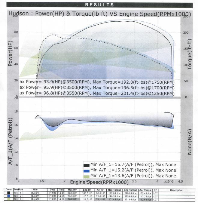 I've made a few runs on the Dyno with the old Hudson. I'm trying to standardize the settings to get repeatable data for future runs.