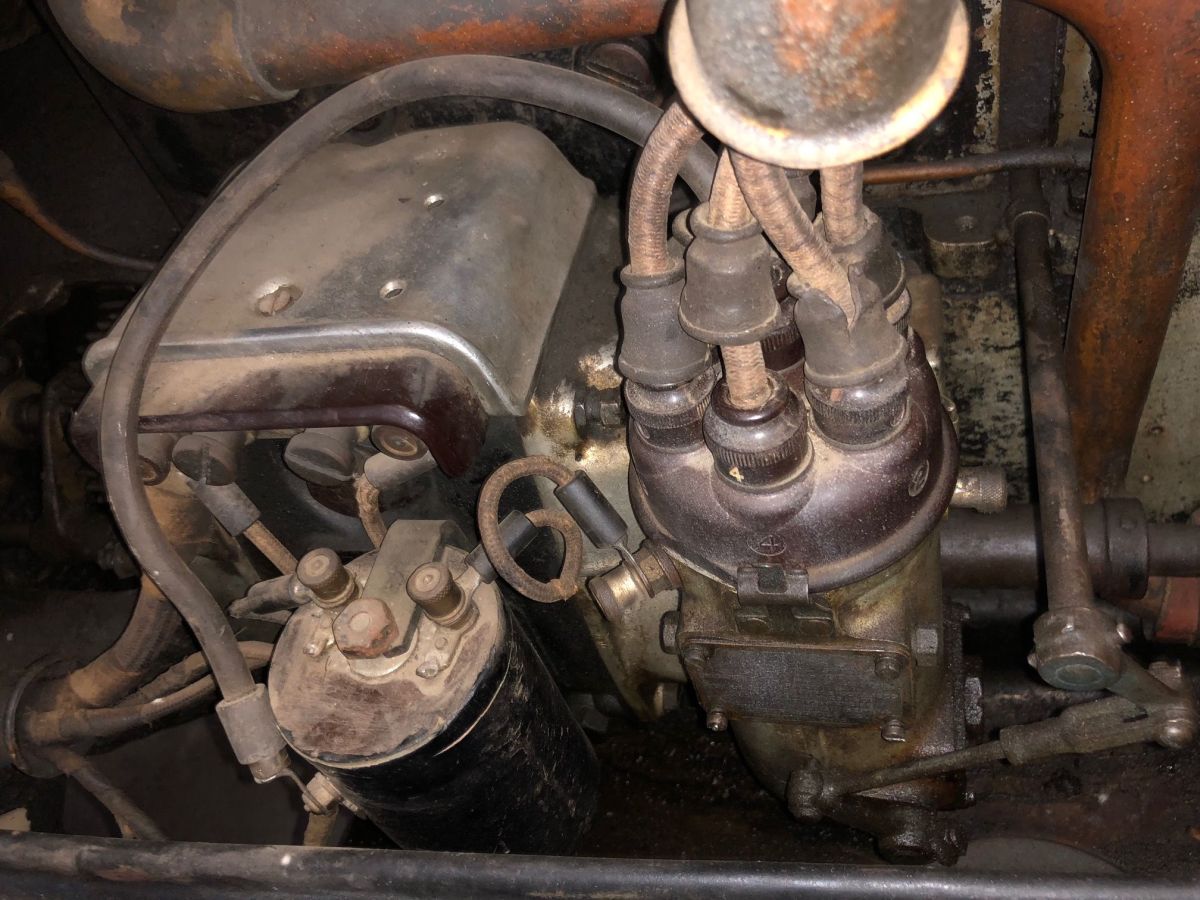 OK here is a picture of a 1915 engine. I wished mine looked like this. You can see the coil down by the distributer. It is the round cylinder, this has a cover over the top terminals.