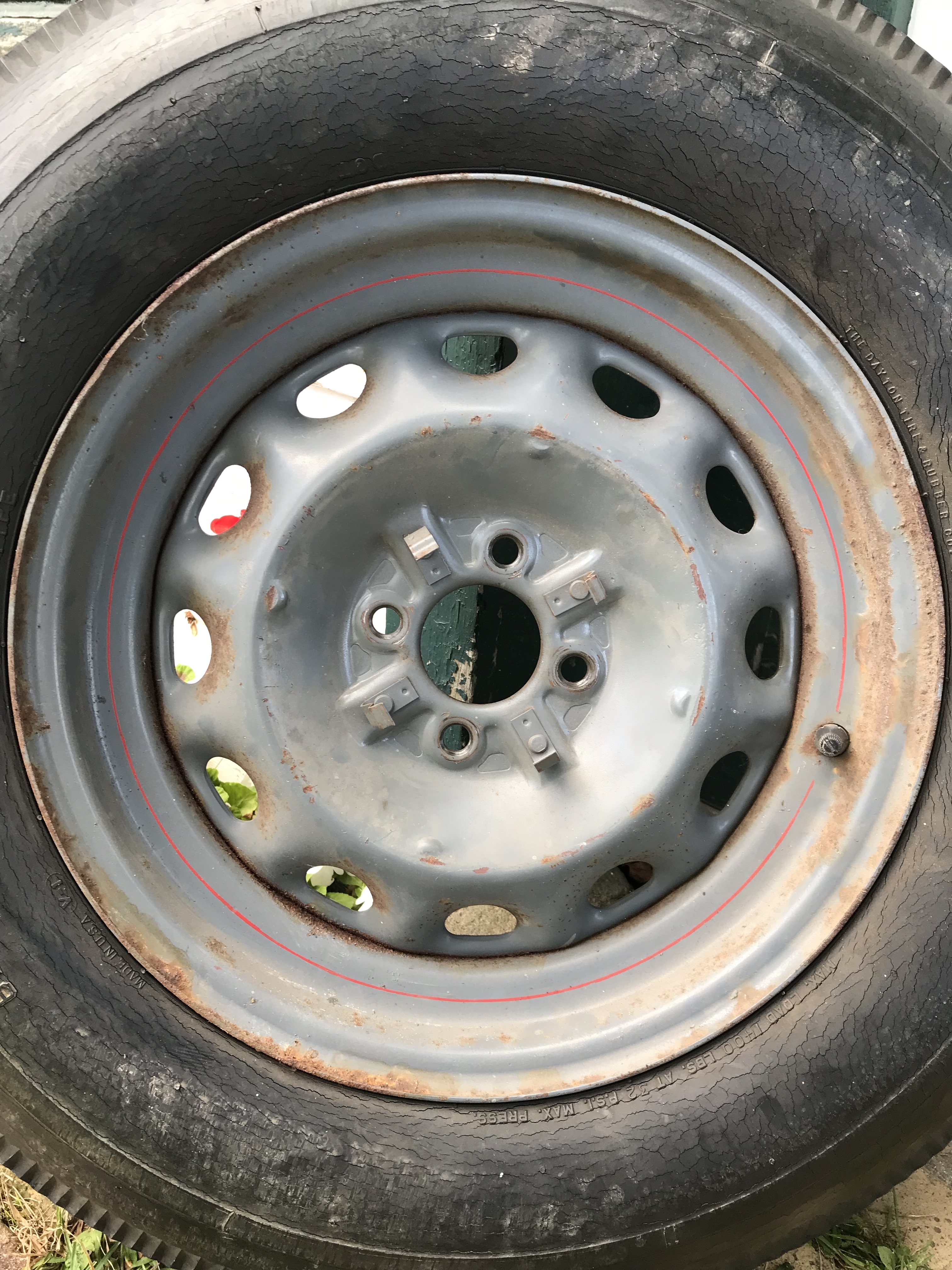 Thanks Big Sky. The tire installer I've know for years, he has his own small shop. I'll past this data along to him. He directed me to a body shop that does restoration work. I visited it last Thursday morning. The body shop told me to have the tires removed. They'll soda blast the rims inside and out and prime the entire rim. Then I'll have the tires mounted. Back to the body shop and they'll then mask the tires, do the top coat, add the pin strip and add the clear. He said he's done it this way may times and guarantees his work. He showed me multiple pictures of his work. From cars, to motorcycles to snowmobiles. Attached is a pic of the worst rim.0