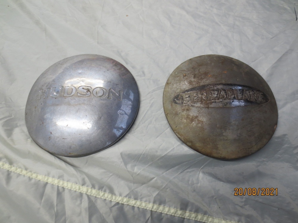 Looking to purchase 34 or 35 Terraplane Hub caps. The condition of the exterior is irrelevant so long as the base is in good order. 1934 or 35 Hudson would also be okay so long as they are off the short wheel base model ie they fit the four stud wheels. Pictures of what I am after are listed below