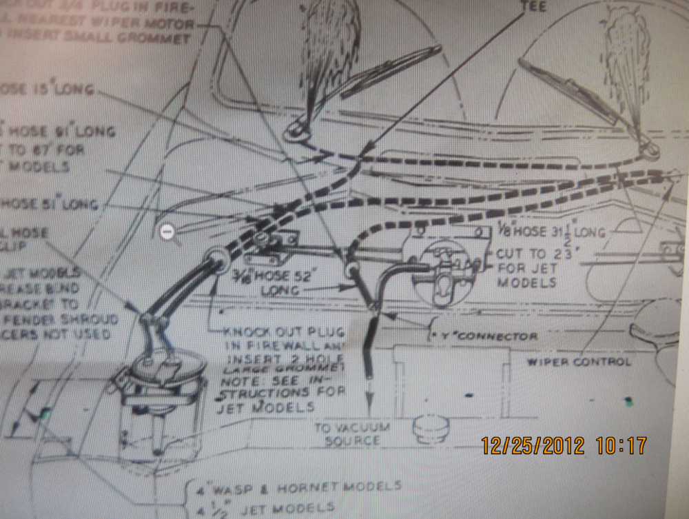 On my 51 there was a tiny screw in the side of each wiper transmission. I found new trico jets on eBay and they screwed right in. The wiper transmissions already had the little pipes inside under the dash. The wiper switch already had the button in it and the pipes on the back. Just had to mount the jar and run the hoses. This was on a 51 Commodore.0