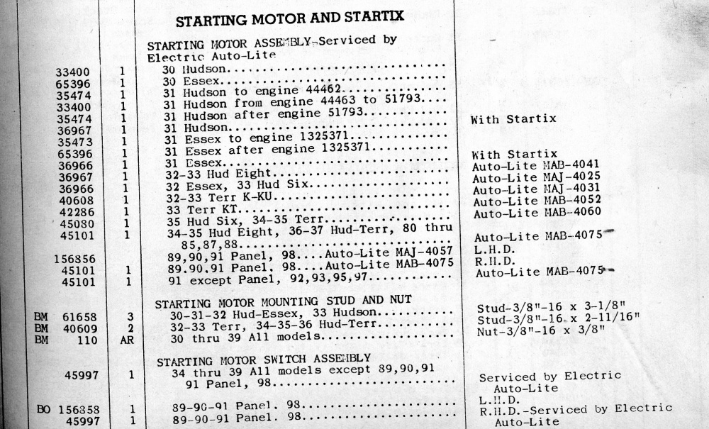 You can also find some starter listings on a Hudson factory bulletin found at